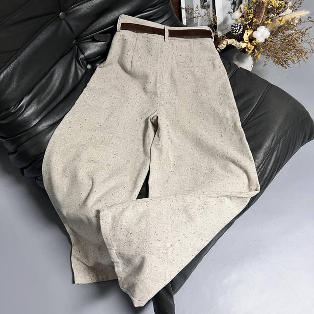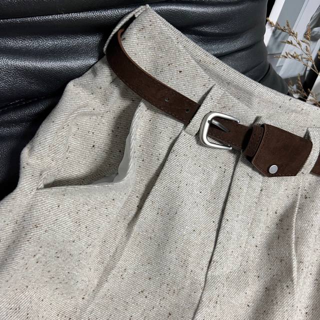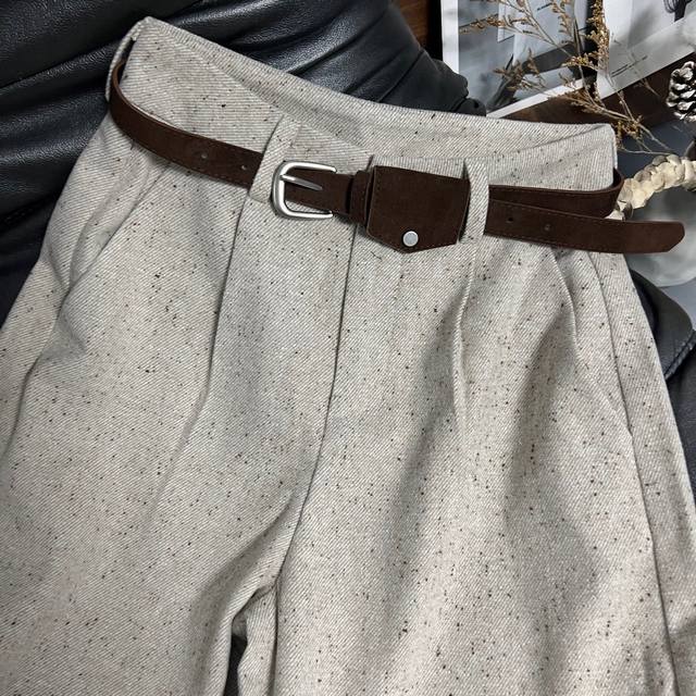 25 Autumn/Winter New Wool Casual Pants DDD Available in dark gray, light gray, and beige, with a brown belt. Wide-leg design and high waist. Pair with a crop top for a sophisticated look, or with a sweater for a relaxed and stylish vibe. Super flattering and slimming. Highly recommended! Available in 3 colors, sizes S, M, L. DDD