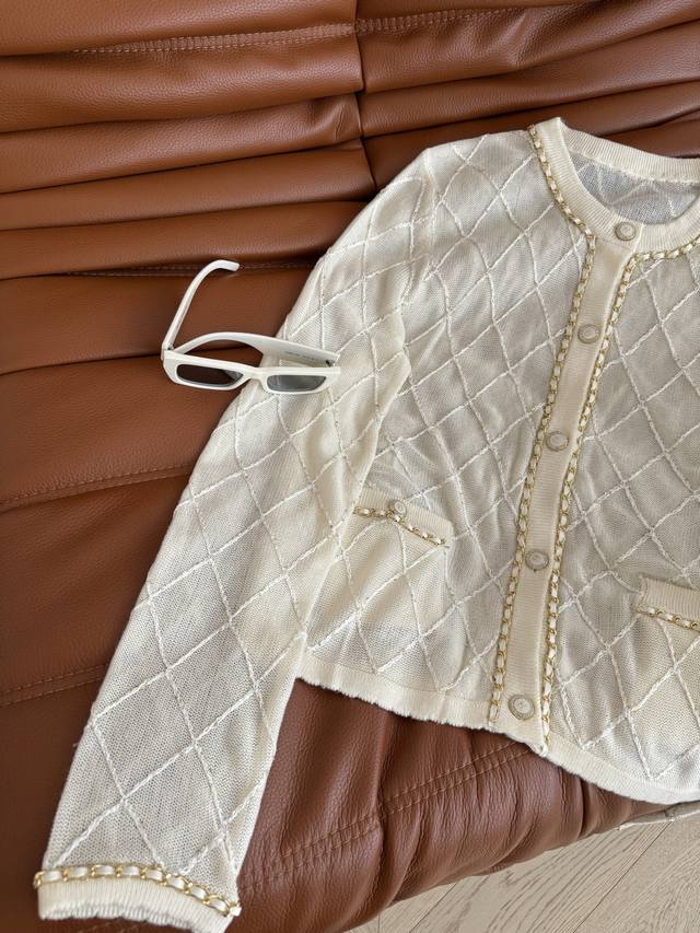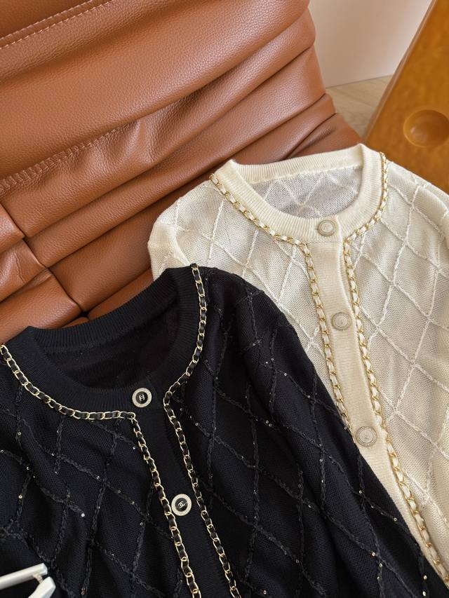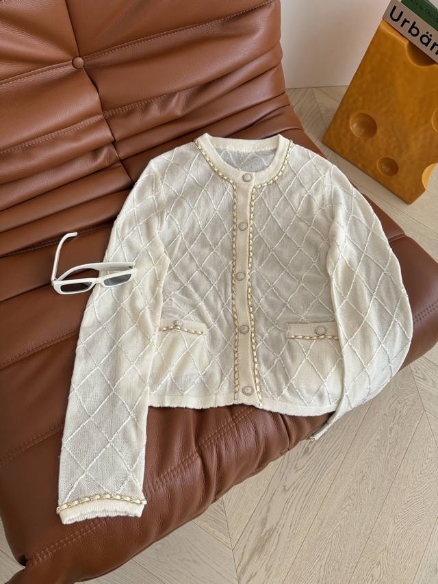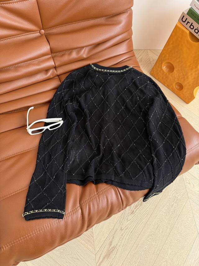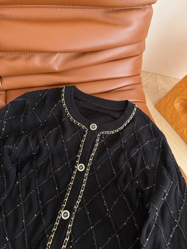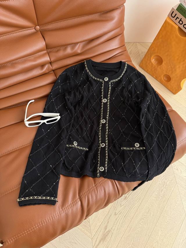 25 Early Autumn Chain Design Diamond Cardigan Middle-aged Style Fashionable Feeling It is a very practical cardigan for early autumn. Classic and elegant, it is suitable for all occasions. It can also be paired with a small vest from the same series. The heavy chain edging design is very exquisite. Two colors and three sizes