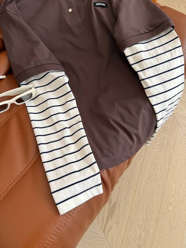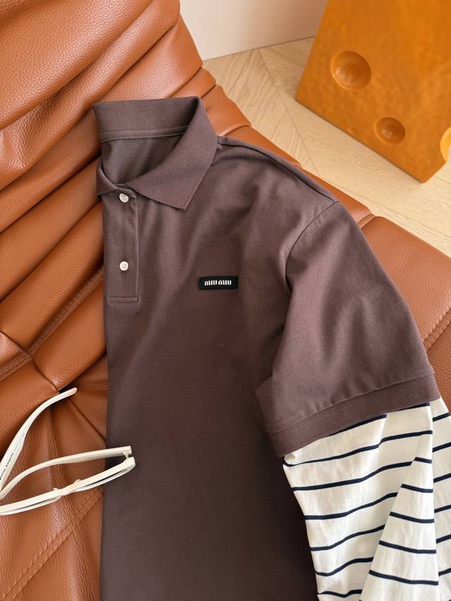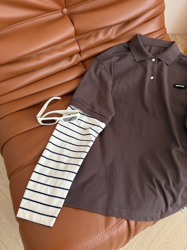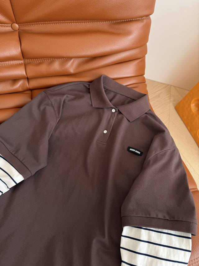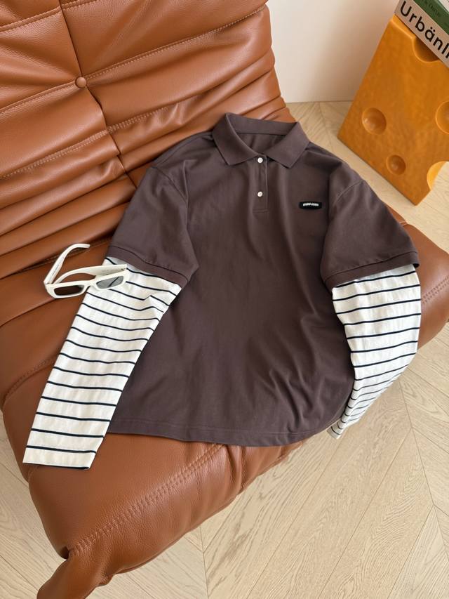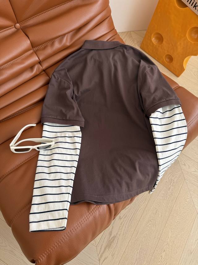 25 Early Autumn Maillard color matching Retro style Online logo decoration Fake two-piece design Long-sleeved T-shirt Polo lapel design Fashionable people layering King bomber single item can be worn casually to create a relaxed feeling Lazy adjustment hides meat and makes you look thin and particularly energetic and fashionable Easy to get one color three sizes