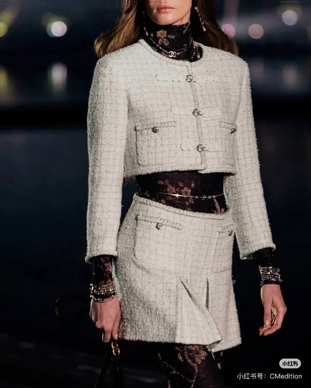 Chanel's new autumn/winter 25 short trench coat with a subtle jacquard logo. Th
