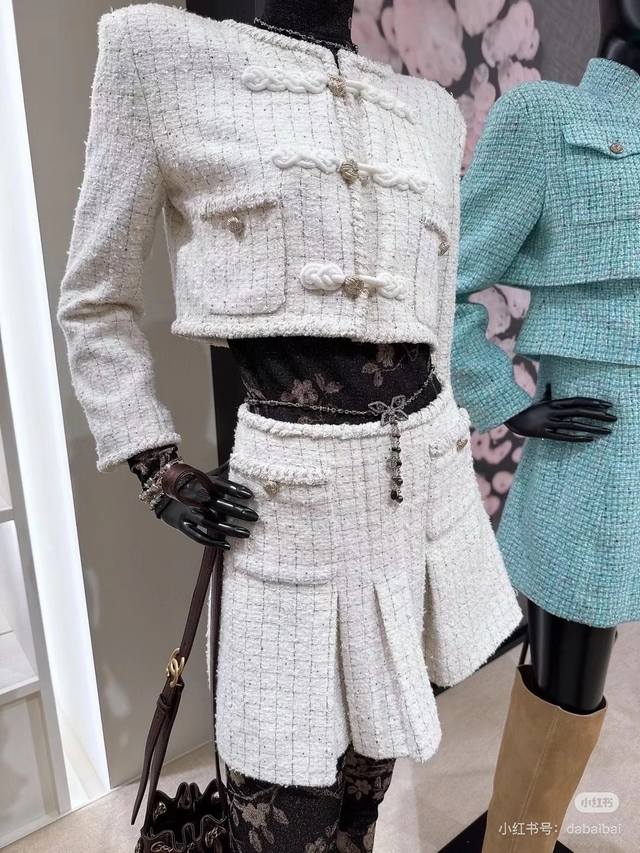 25 Early Autumn New Handicraft Series Handmade Button Plaid Suit Jacket Sml Skir
