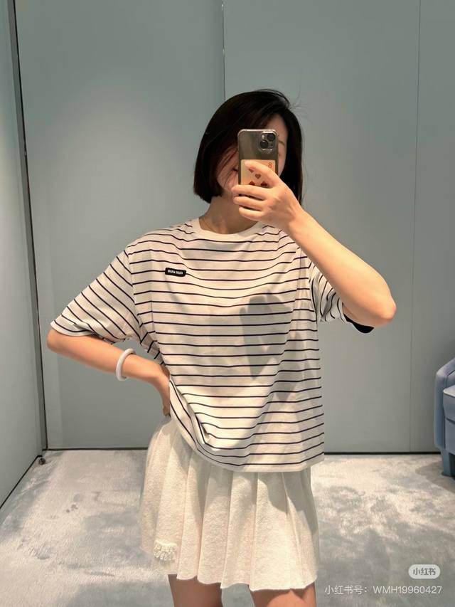 25 Early Autumn New Striped Double-sided Casual T-shirt Fashionable Girl's Outfi