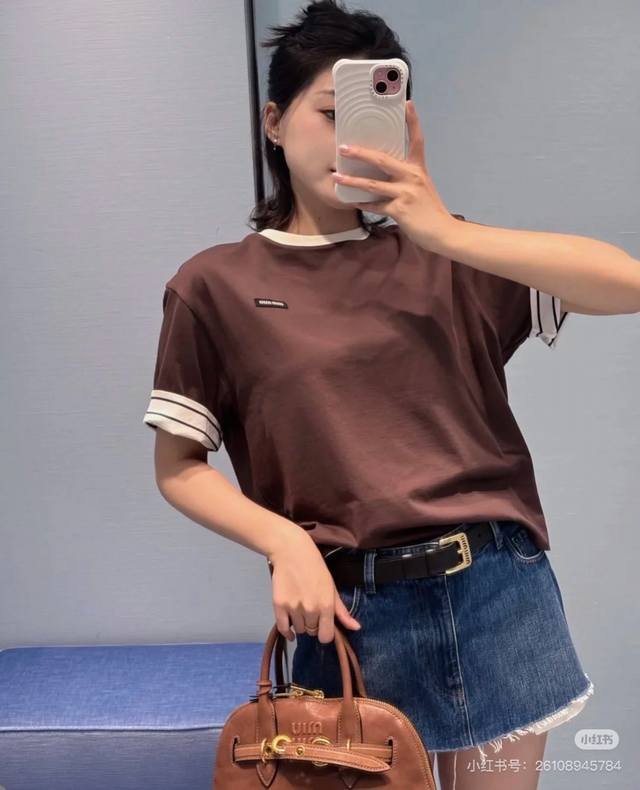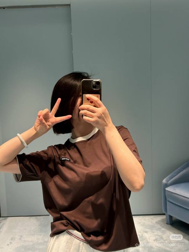 Pr Double-collar triangular logo round neck T-shirt, produced by OEM factory P S