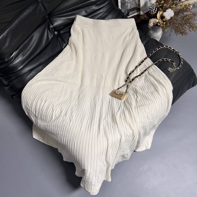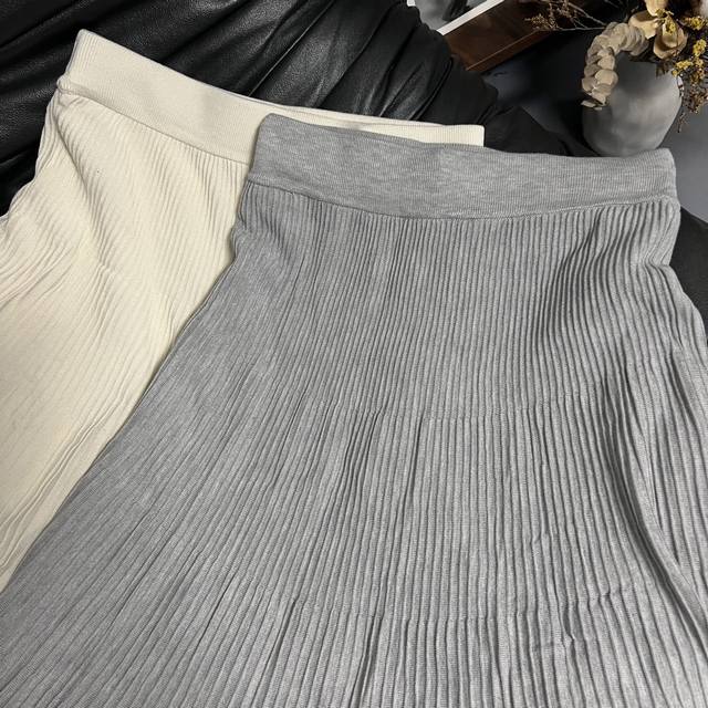 25 Early Autumn new style skirt Creamy white and light gray two-color ribbed tex