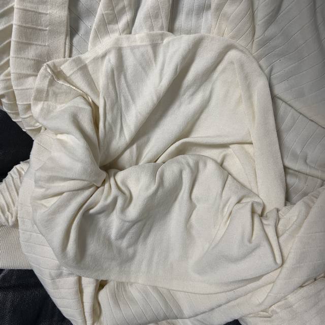 Creamy white and light gray two-color ribbed texture, drape fabric, high waist design