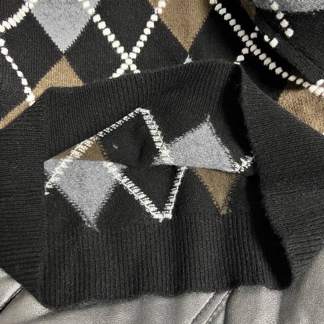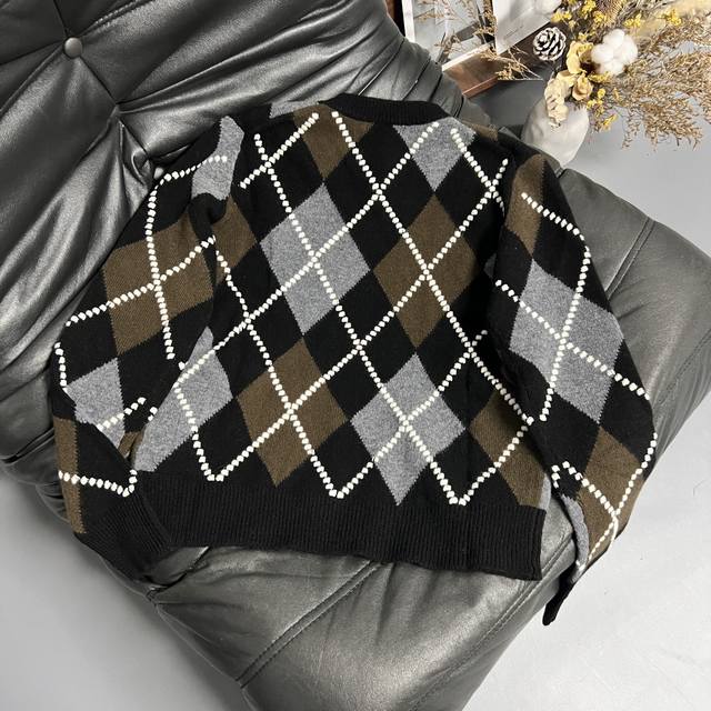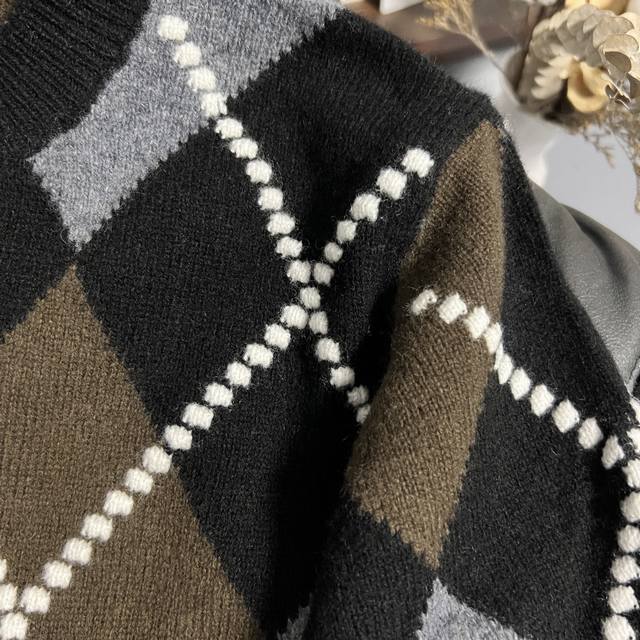 Diamond pattern hook flower black and white brown color matching, soft and glutinous knitted loose cut layered wear instantly become fashionable ~