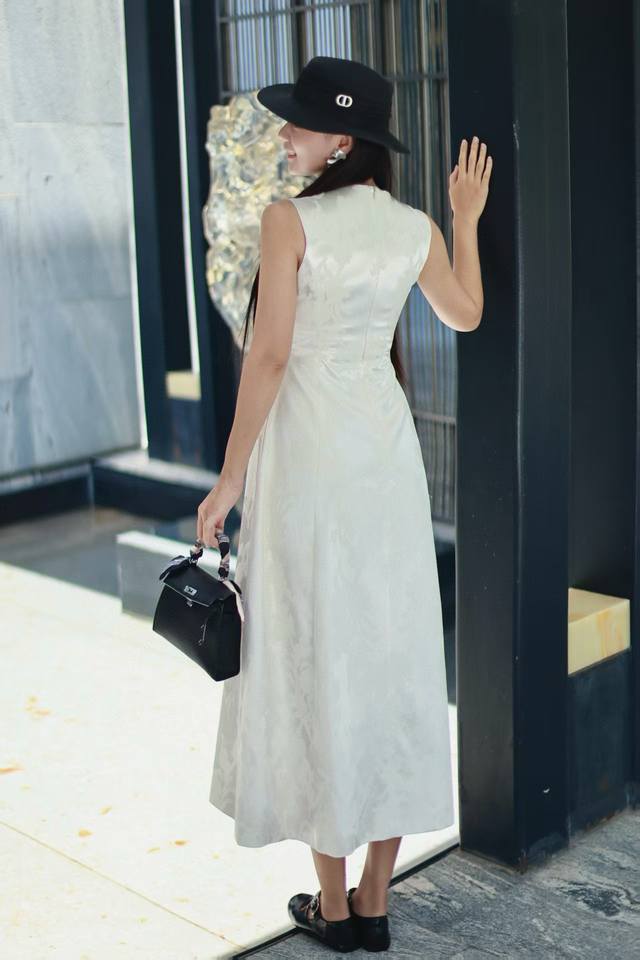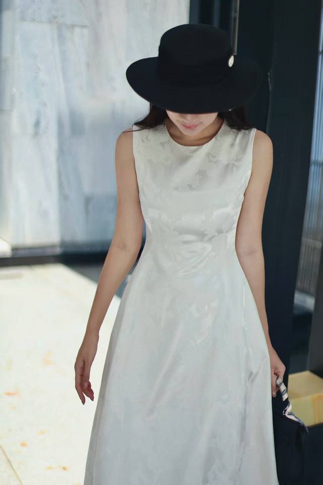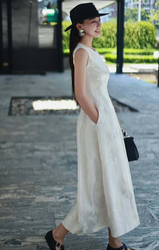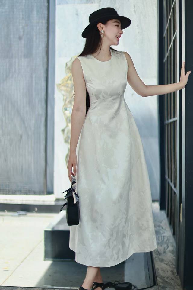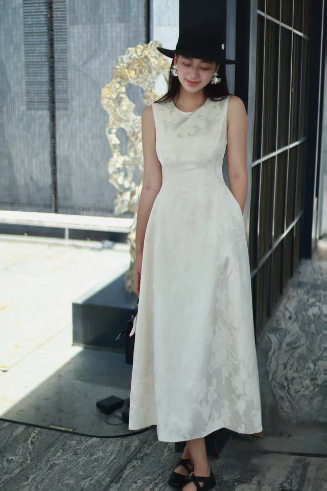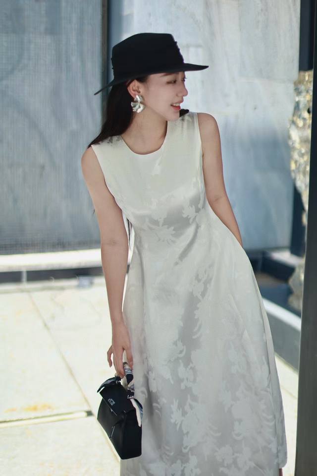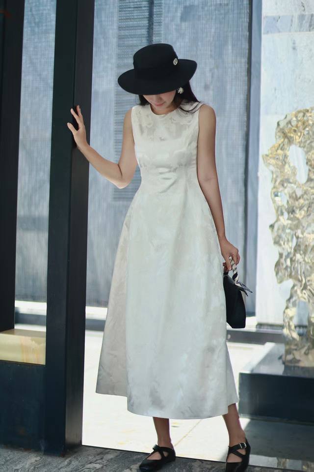 25 Early Autumn New Tencel Linen Jacquard Waist Dress Apricot, Black S-Xl