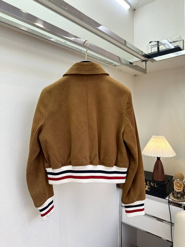 25 F If liking is a fleeting impulse, then love is definitely eternal. Exclusive first release: Small lapel leather jacket. If you're a sister who's picky about the quality and feel of leather jackets, you can really buy this without hesitation. It's made of rare sheepskin suede, so soft you'll forget it's a leather jacket. The contrasting ribbed knit trim is youthful and sheepskin-inspired. The jacket's cut is extremely forgiving, suitable for a wide range of people, and different styling options will present different unique charms. Sizes: S, M, L.