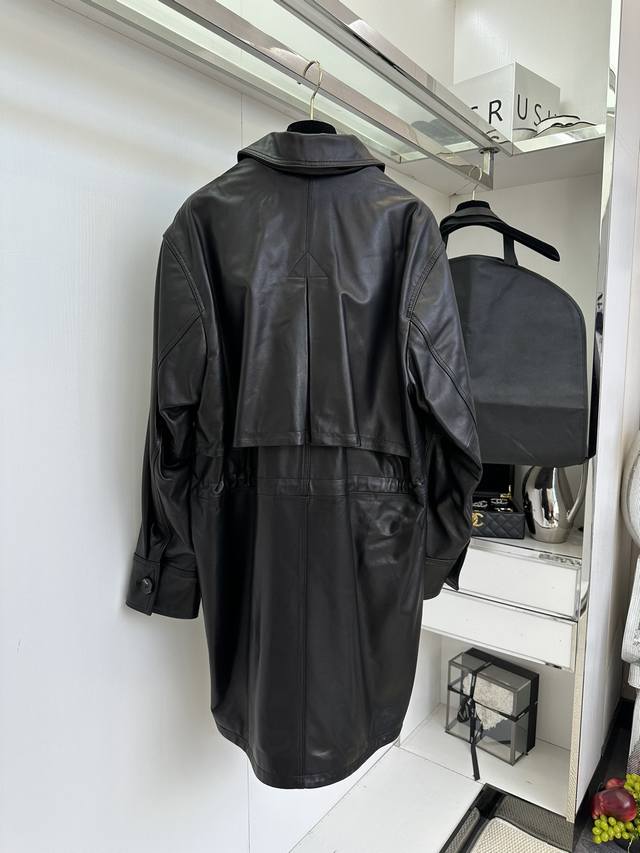 25 F Lun A leather trench coat is truly worth its weight in gold. This waist-hugging trench coat, made from imported Italian sheepskin, is truly not to be missed. The leather is incredibly soft, and the fit is wide and relaxed, creating a casual and stylish look. This mid-length trench coat is a must-have for a stylish look. We offer it in military green, black, and deep red, all perfect for fall and winter. Sizes S, M, L, and