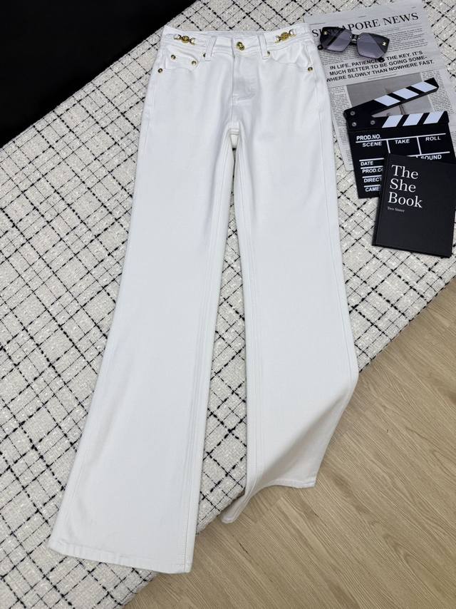 25 New Arrival: High-waisted, long-legged flared jeans with metal chain embellishment at the waist. Functional pants that automatically lengthen the legs, enhancing waist and hip proportions. Elastic fabric, exceptionally slimming and flattering. A must-have item with a flared style. Available in two colors: 26-27-29-29-30. DDD