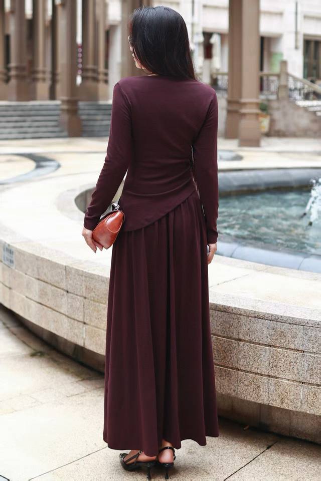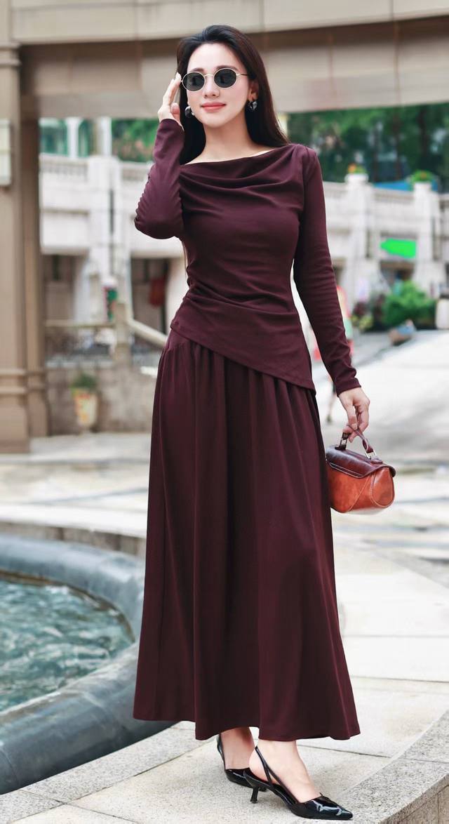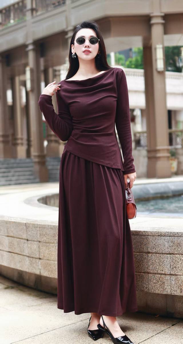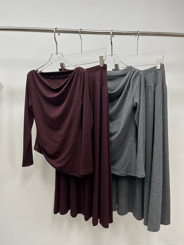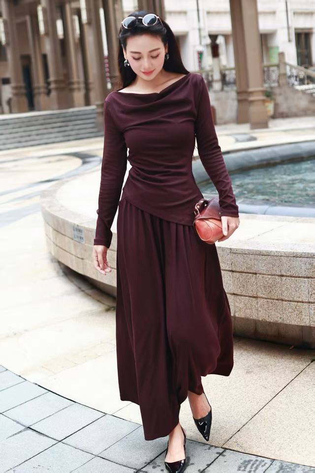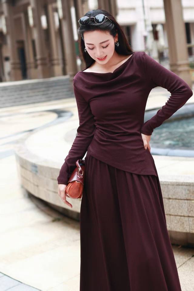 long-sleeved top with a bias-cut waist and elastic waist skirt