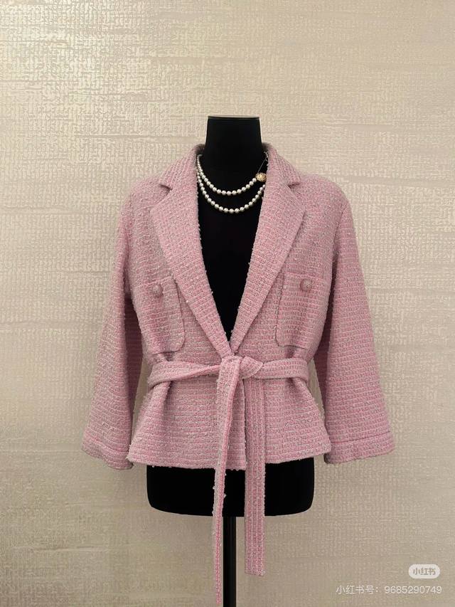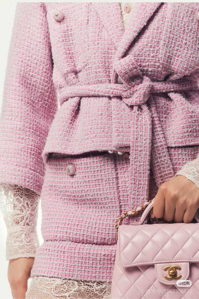 25 New cotton tweed light pink and gray lace-up jacket set jacket Sml skirt Sml