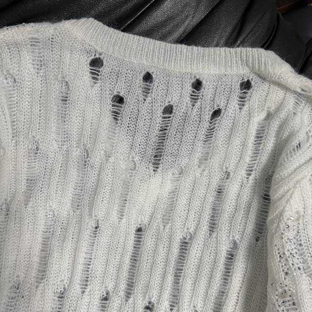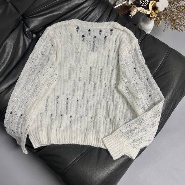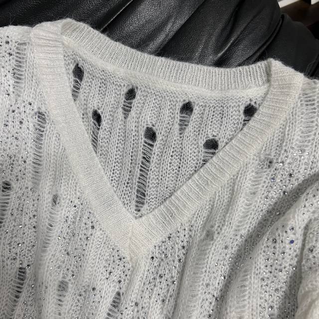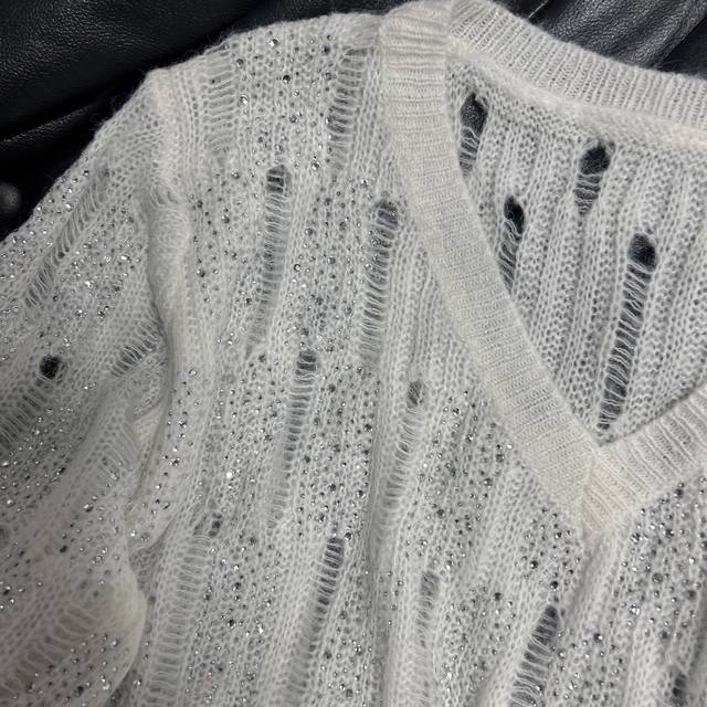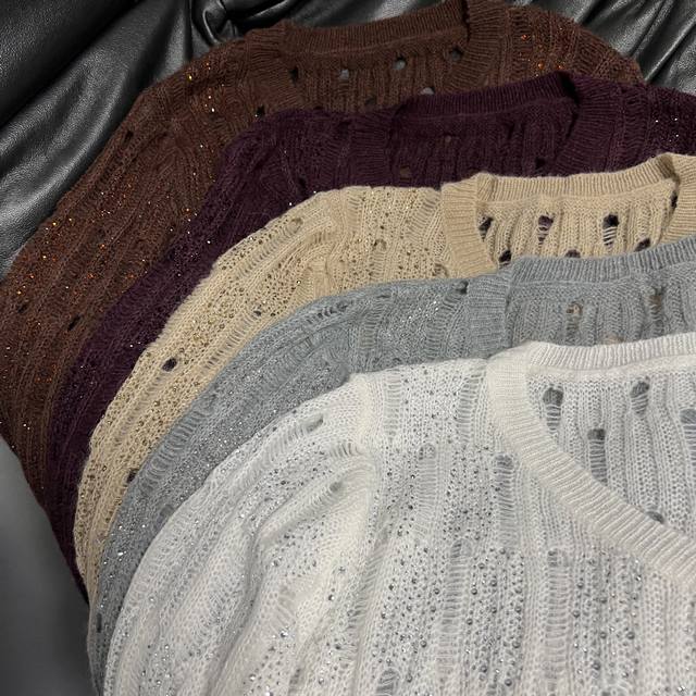 Hot diamond hollow design Loose lazy version, soft and sticky knitted V-neck careful machine, wear alone is a cool beauty, layered wear instantly become fashionable ~
