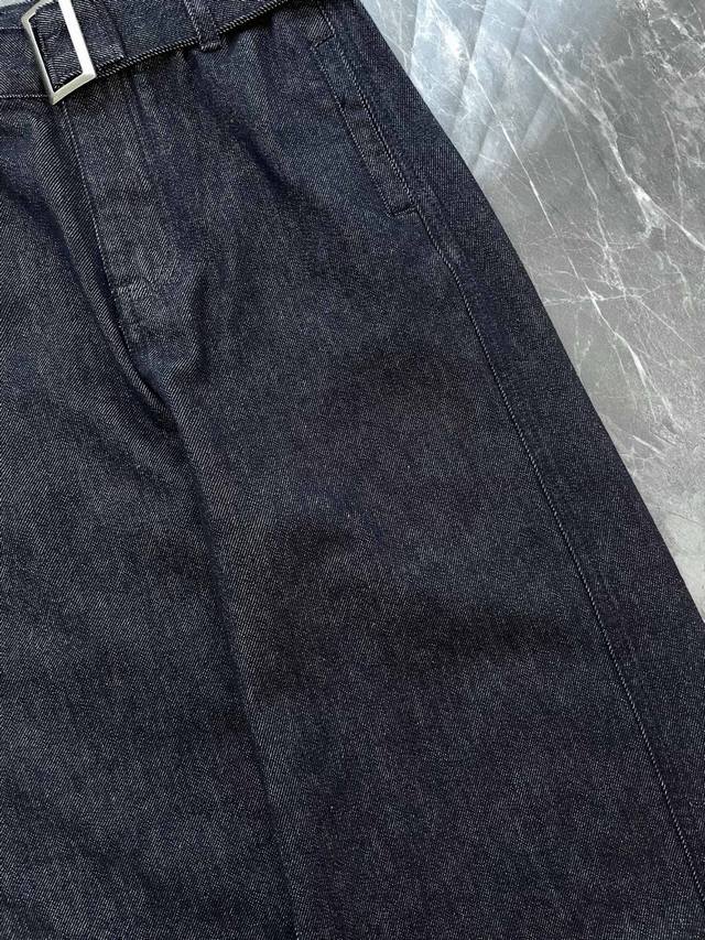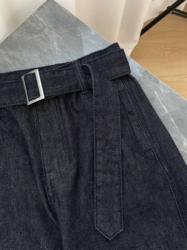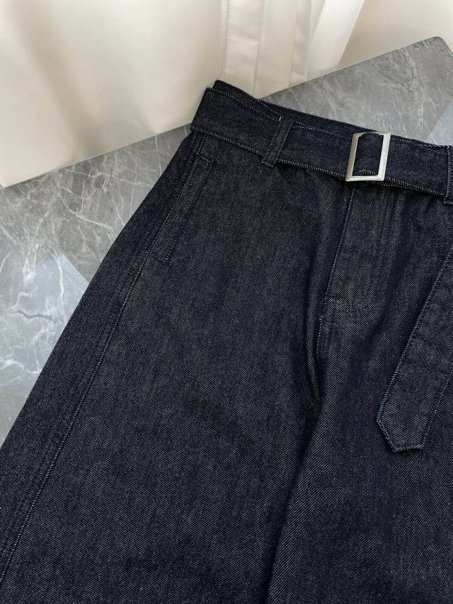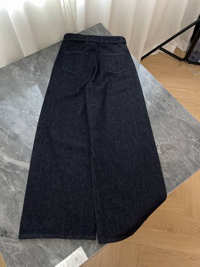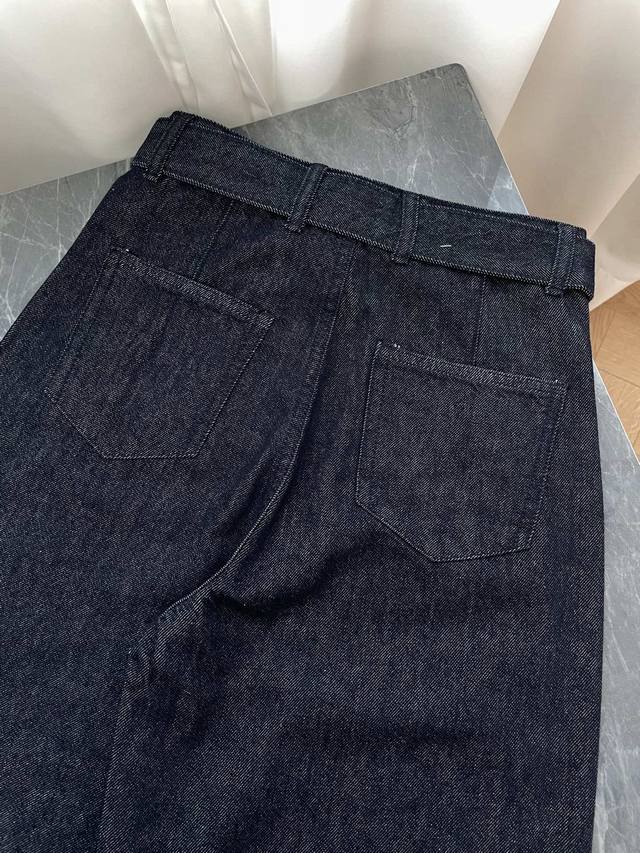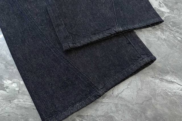 25 New Retro-Style Wide-Leg Denim Pants with a Modern Touch. These wide-leg denim pants are made of dark blue raw denim fabric, giving them a retro feel while their clean cut and design exude a modern vibe. 1 color, 4 sizes.