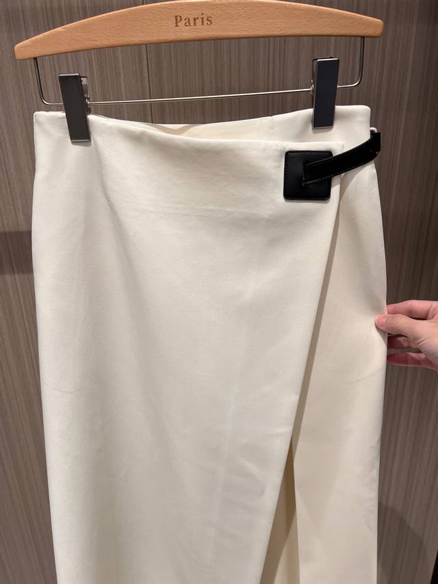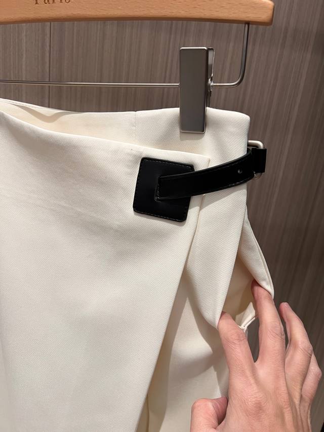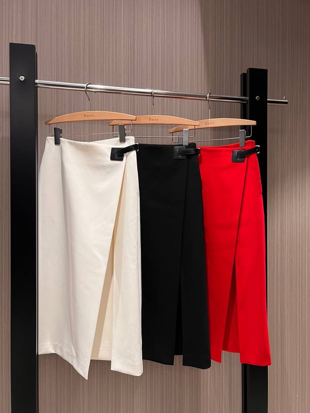 25 New style recommendation: asymmetrical design, belt buckle decorated skirt, irregular slit, pockets on both sides, French minimalist fashion, slim fit, age-reducing, versatile, black, white, red, Sml