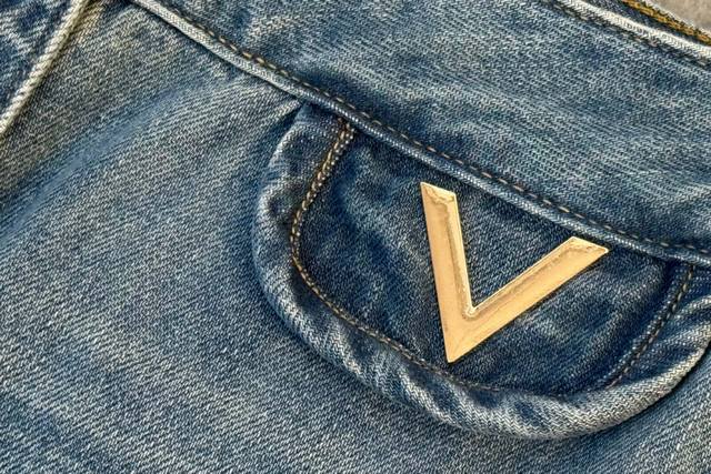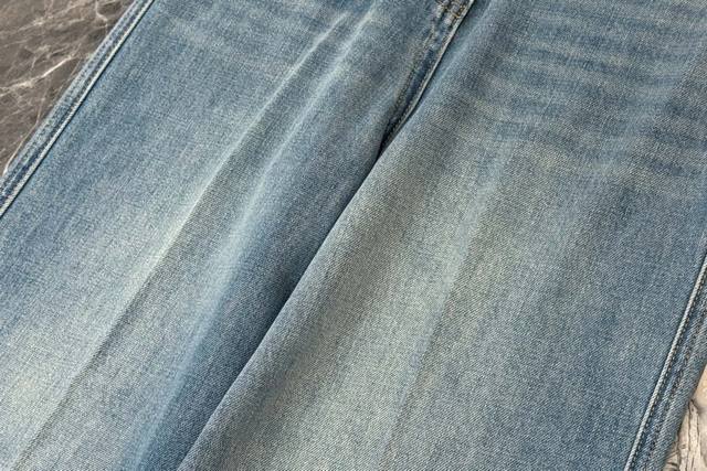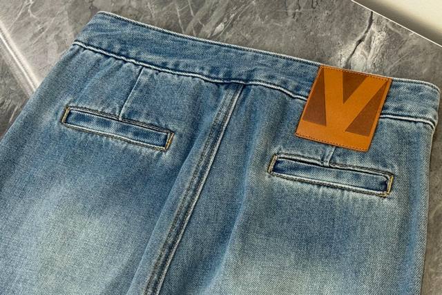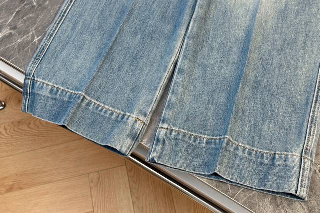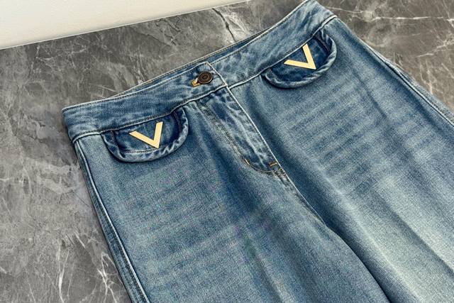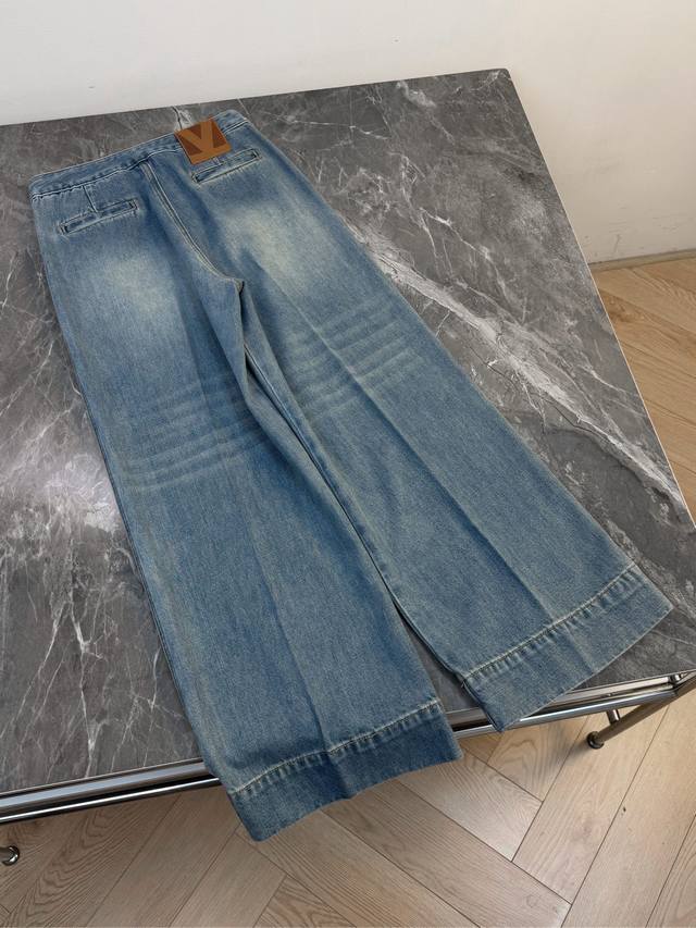 25 New wide-leg jeans are made of classic light blue denim fabric with a natural washed and distressed effect. Retro and fashionable, the high-waist design is paired with a unique double-pocket design. The exquisite V-shaped decoration on the pockets adds a subtle highlight and enhances overall recognition. The wide-leg pants have a good drape, which can not only shape the leg lines but also provide a casual and free-spirited wearing experience. Suitable for various occasions, whether paired with a simple short top for a neat look or a loose sweatshirt for a casual atmosphere, it is easy to grasp the fashion sense and is an indispensable and versatile item in the wardrobe. Solid color 4 size