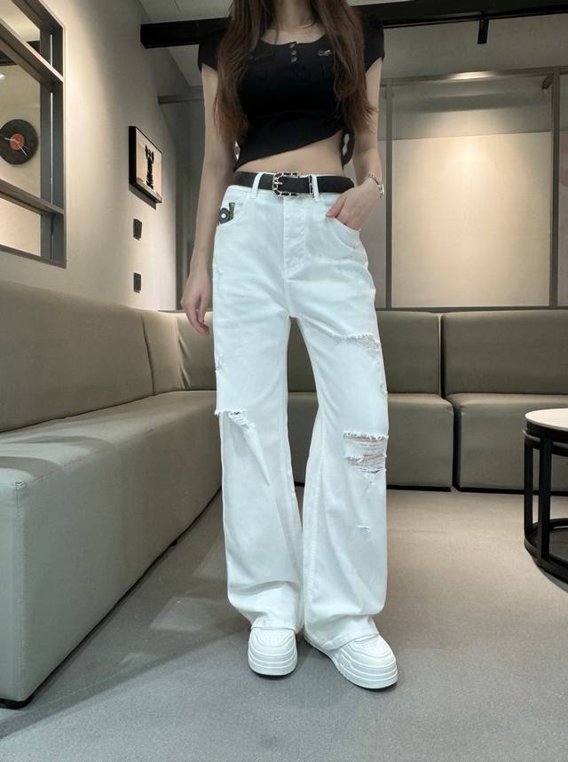 25 Spring and Summer new Celin* two-color flocked letter short-sleeved T-shirt