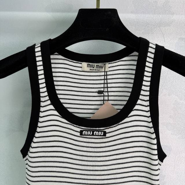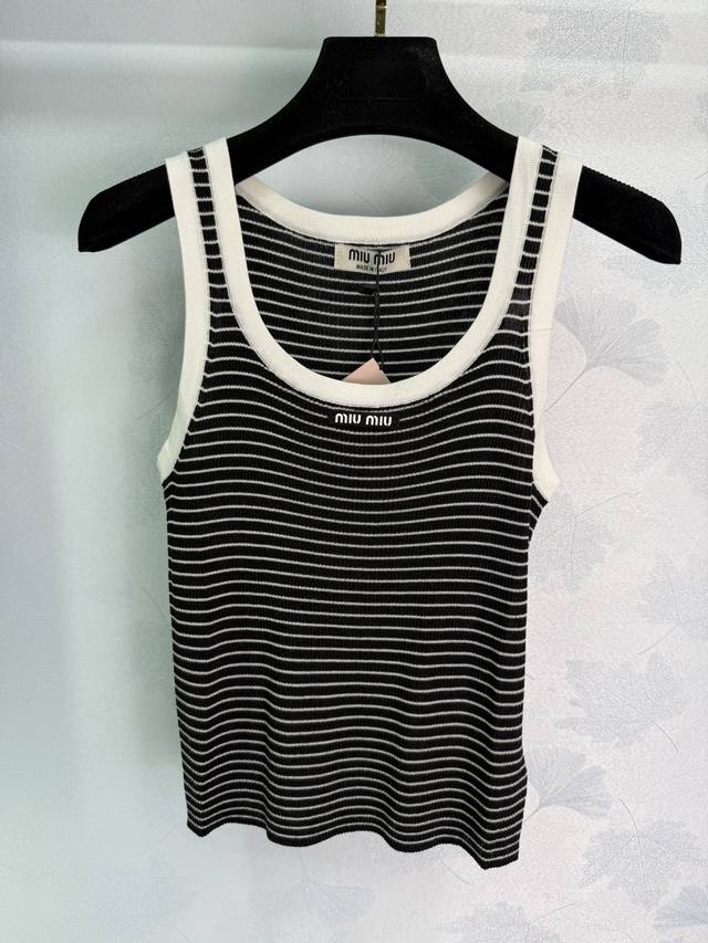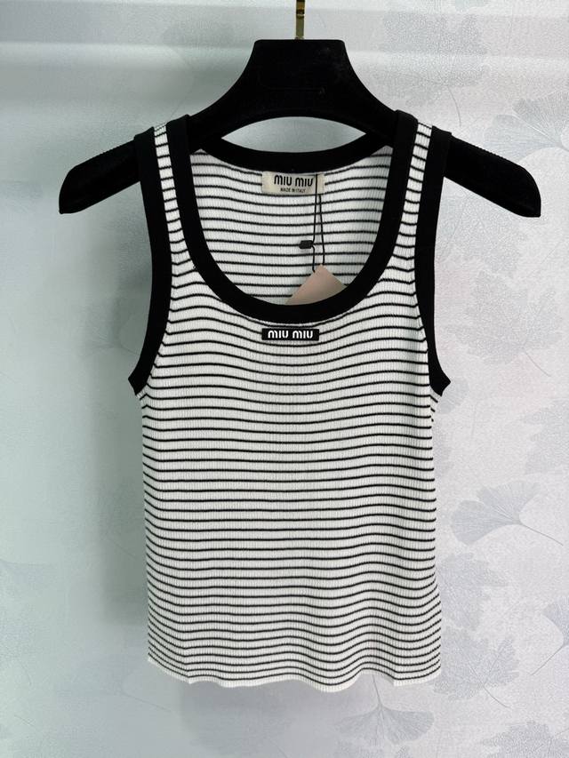 25 Summer Miumi* High Quality U-neck Bright Silk Elasticity Chapter Temperament All-match Vest Running Quantity Recommended Black and White Two Colors Size Sml. T226B.