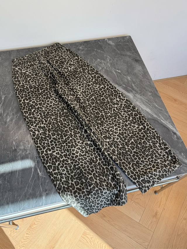 25 The new leopard-print wide-leg pants are a must-have for fashionistas. The classic brown and black leopard print is all over the pants, creating a wild and fashionable look that's sure to catch your eye. The high-waist design and loose straight-leg cut hide any excess fat and elongate your legs, making you look incredibly stylish as you walk. The soft, drapey fabric feels comfortable against the skin, making it easy to pair with a simple, solid-color top for a relaxed and cool look that'll make you stand out from the crowd. Whether you're going out or just taking a stroll, these pants are sure to up your style game! Solid color, size