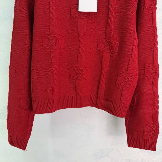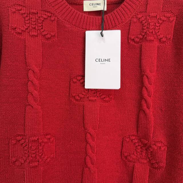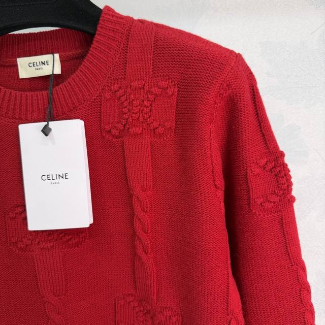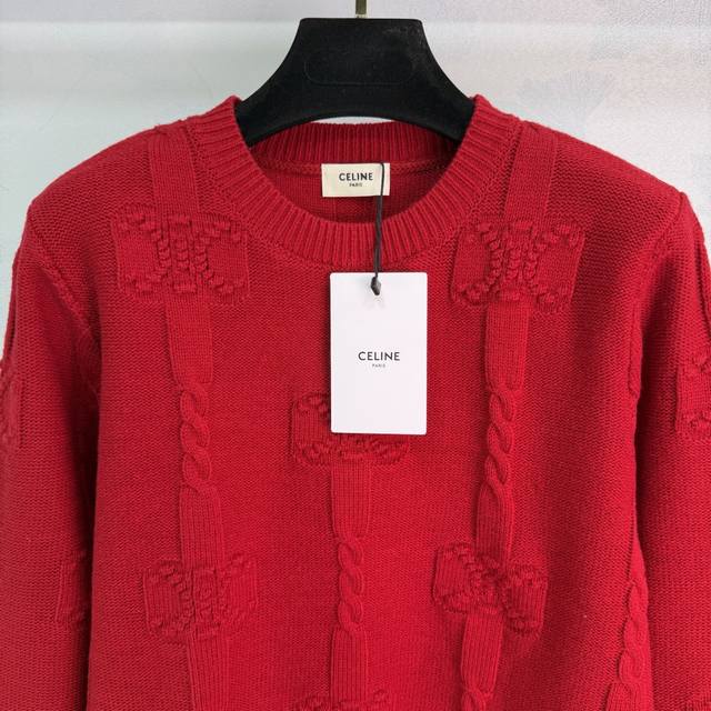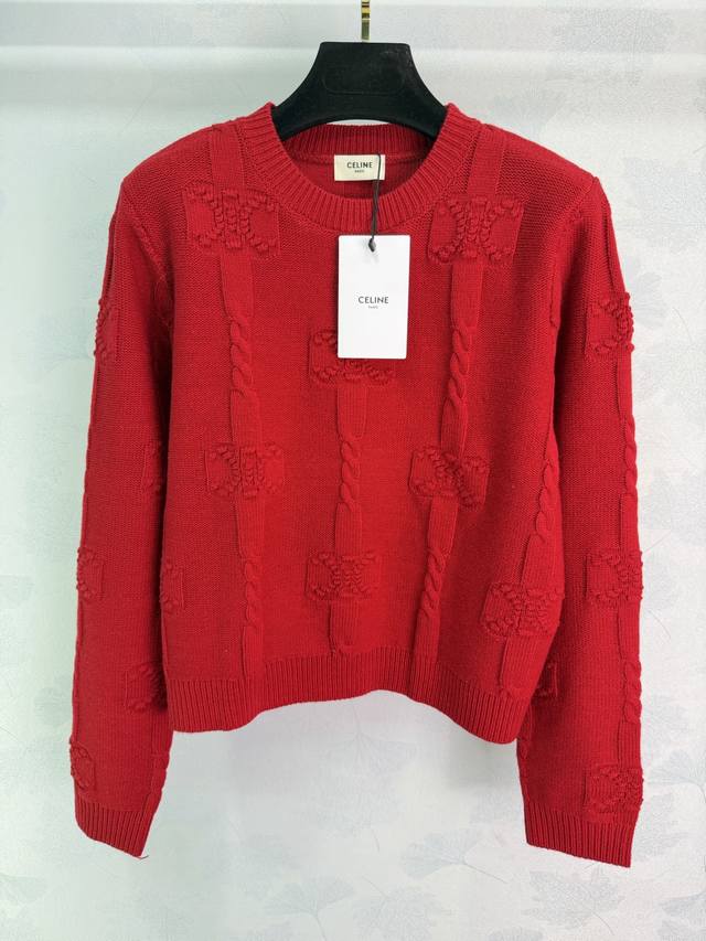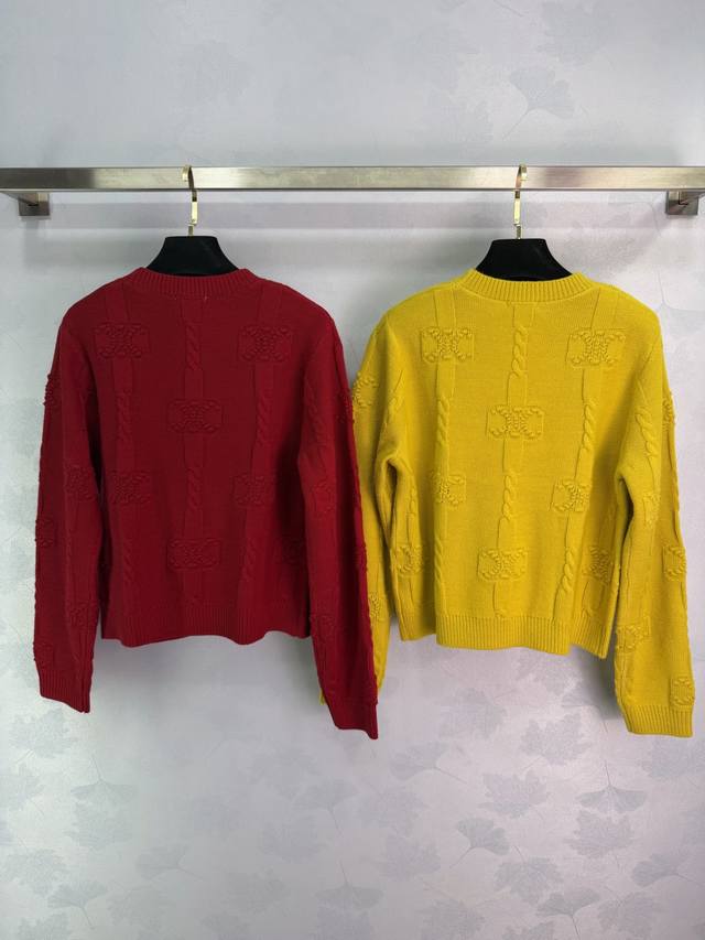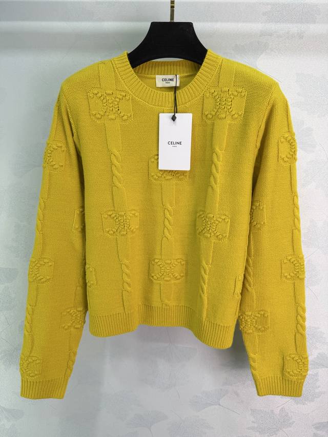 25 Winter Celin* Women's New Arrival: Skin-friendly Thick Cashmere, Round Neck with Arc de Triomphe Pattern + 3D Knitting, Stylish and Versatile Long-sleeved, Available in Yellow, Red, White, and Royal Blue (Sizes S, M, L, T, 226B, DDD)