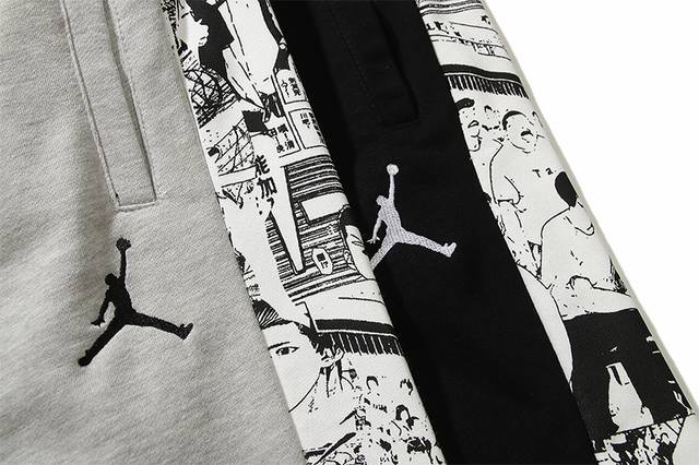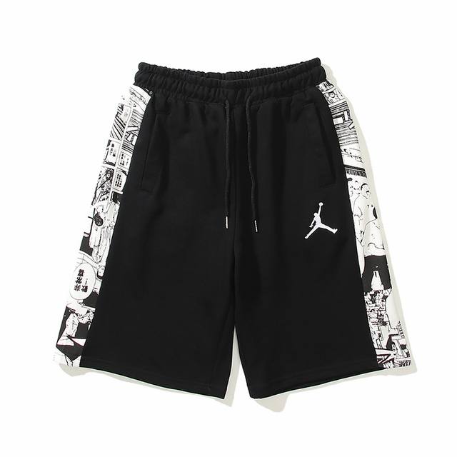 256# Aj flying shorts cartoon embossed men and women loose black and gray M-Xxl