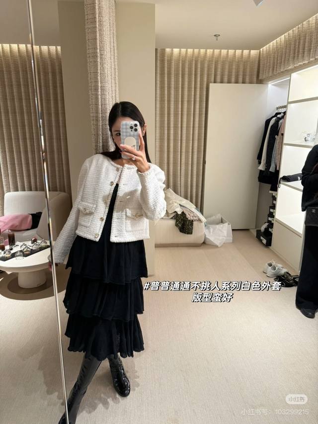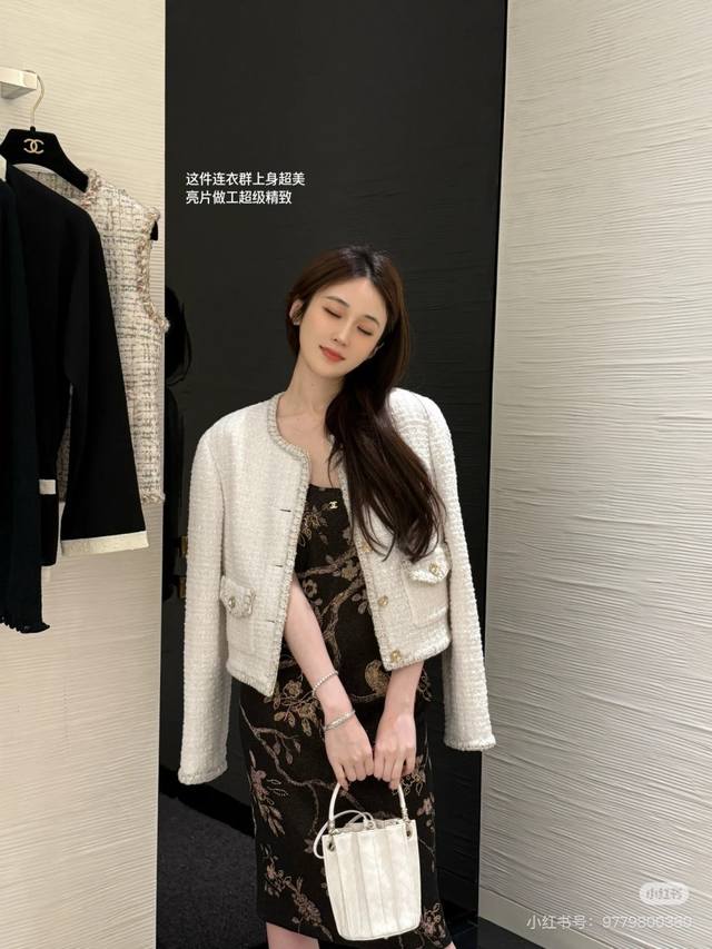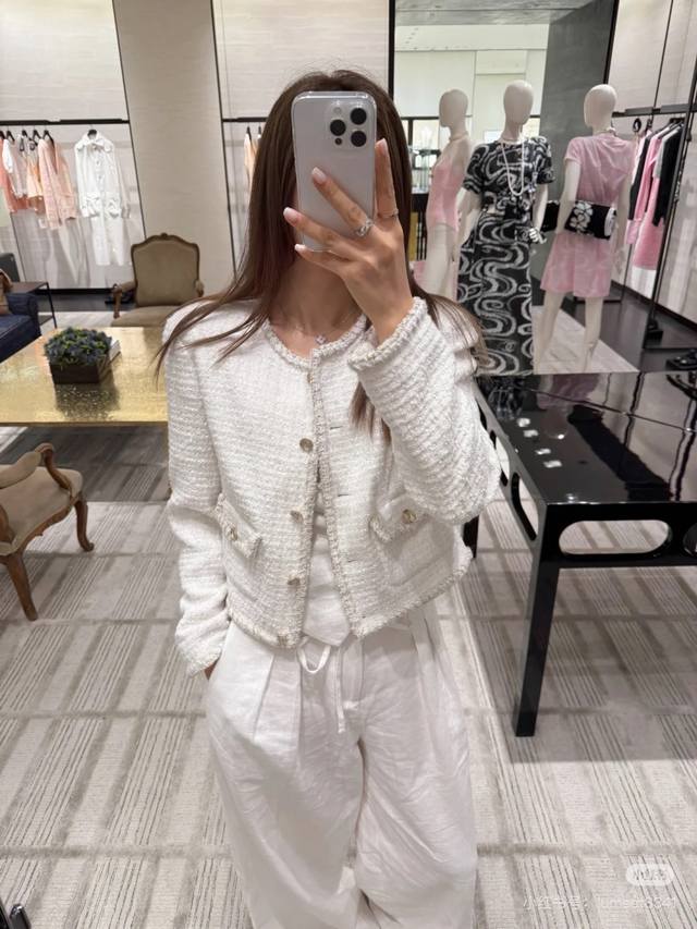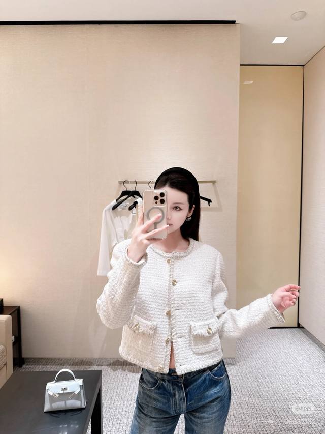 25A Handicraft Square Hot Style White Tweed Jacket Classic Style