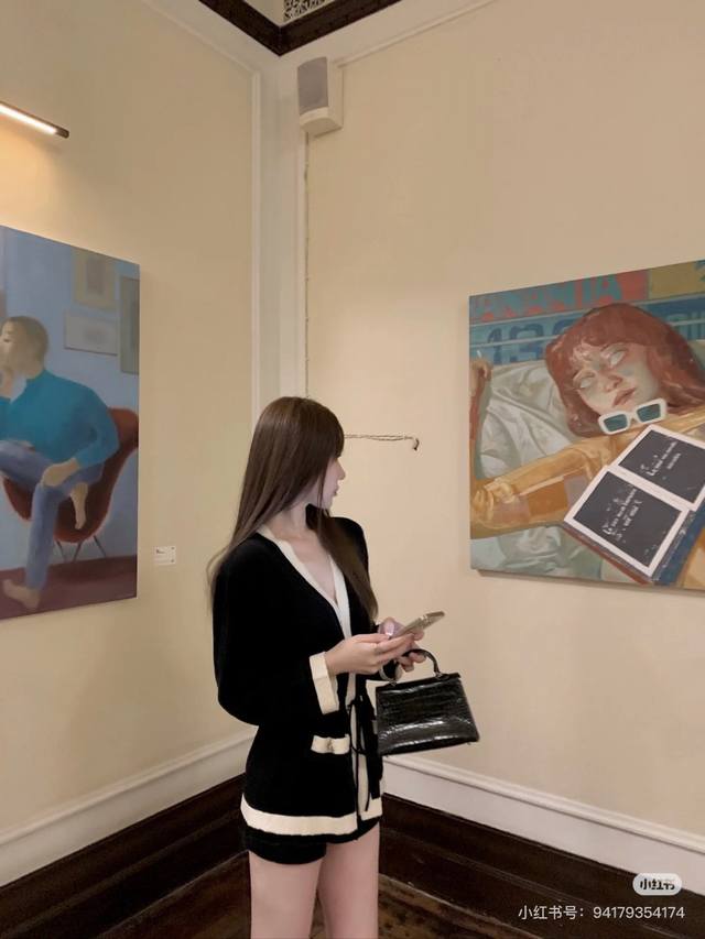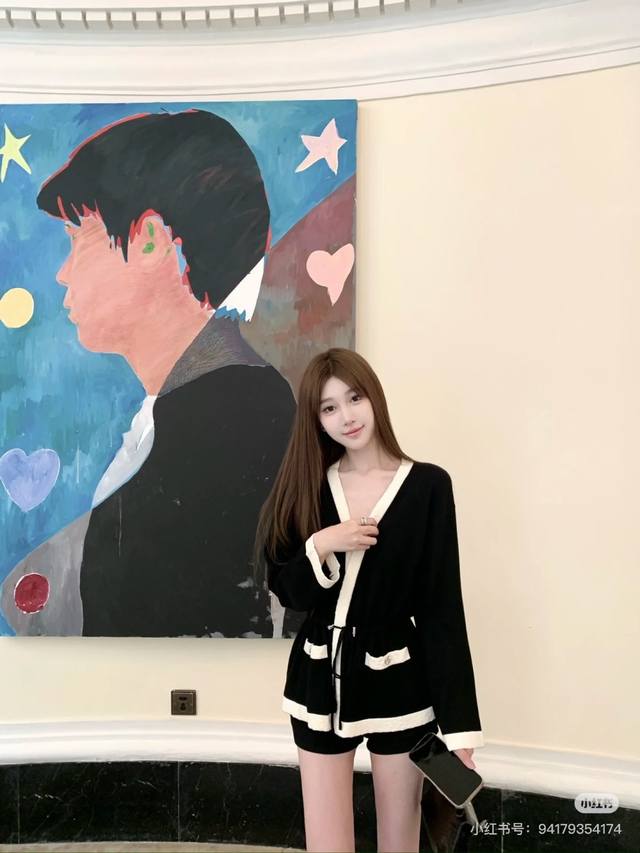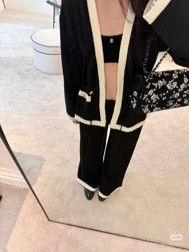 / 25A New High-end Handicraft Black and White Panda Colorblock V-neck Drawstring C