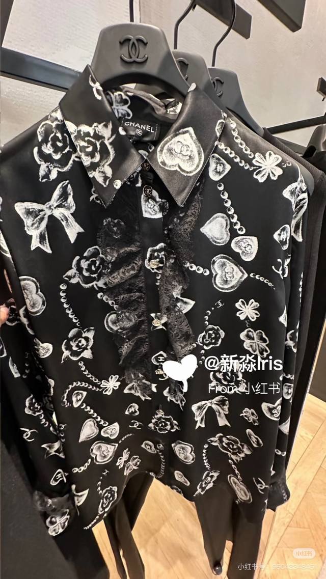 25B New Lace Black Camellia Heart Bow Shirt Sm L