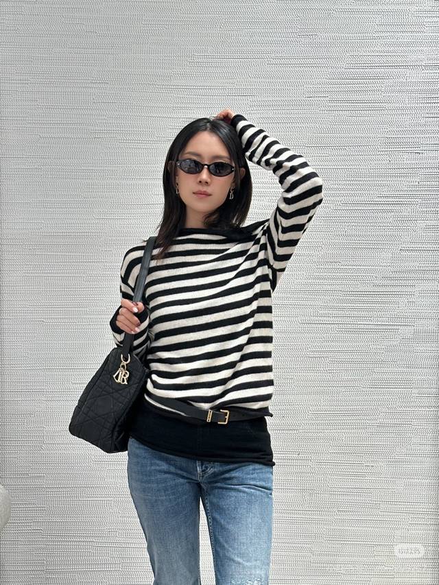 25Fw Autumn and Winter New Navy Style Shoulder Button Striped Knitted Sweater Wo
