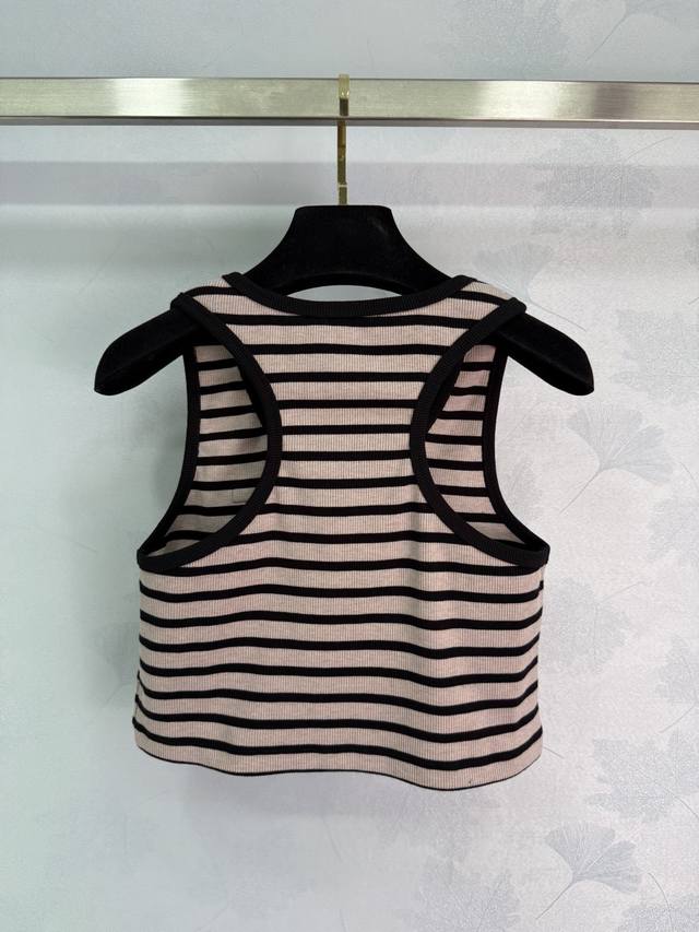 25Miumi* New micro-logo striped aesthetic classic knitted vest | Exclusive Yb development! High-end product! Different from the market version! Interpret low-key luxury with neat horizontal line rhythm. The black trim on the neckline and edge outlines the exquisite outline, and the small brand logo on the chest is low-key. Custom knitted cotton slim cut neutral versatile, effortless high-end feeling! One color 3 code Sml