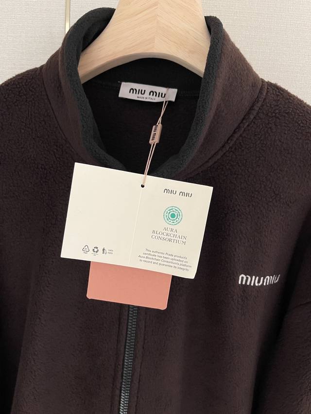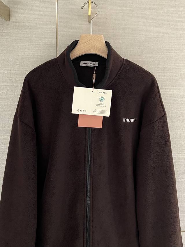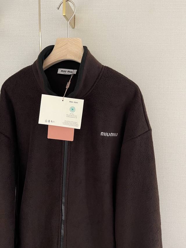 25New logo embroidered polar fleece zipper jacket Miu's bomber jacket is back! A series that looks good on everyone, a college-age look without pressure, and a wide-version three-dimensional cut that men and women can easily control~