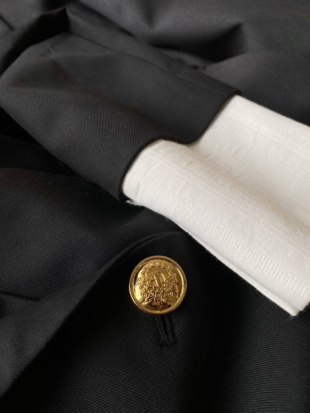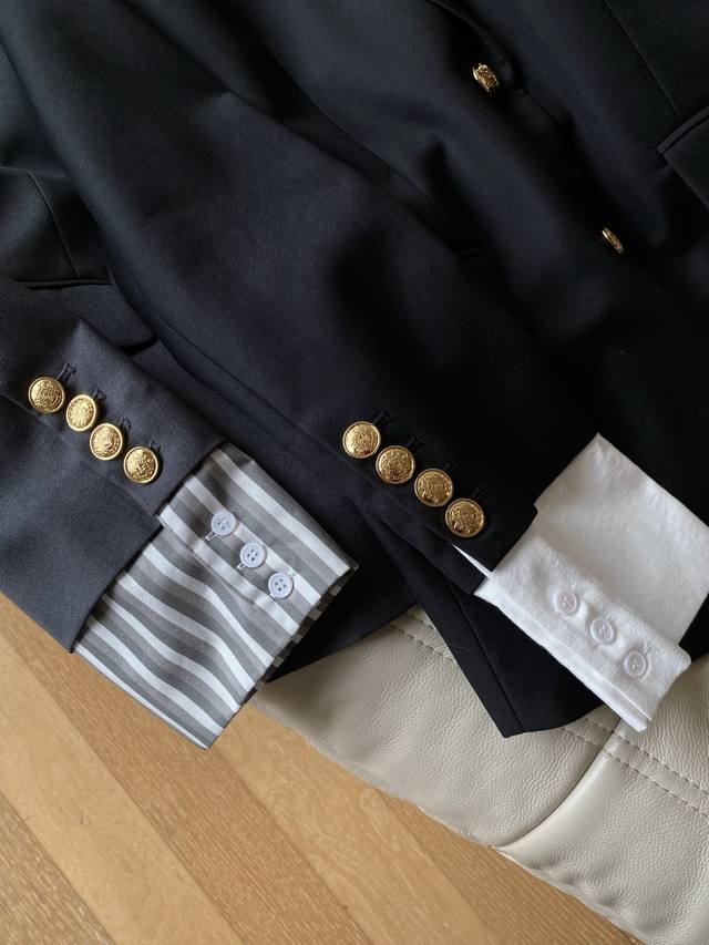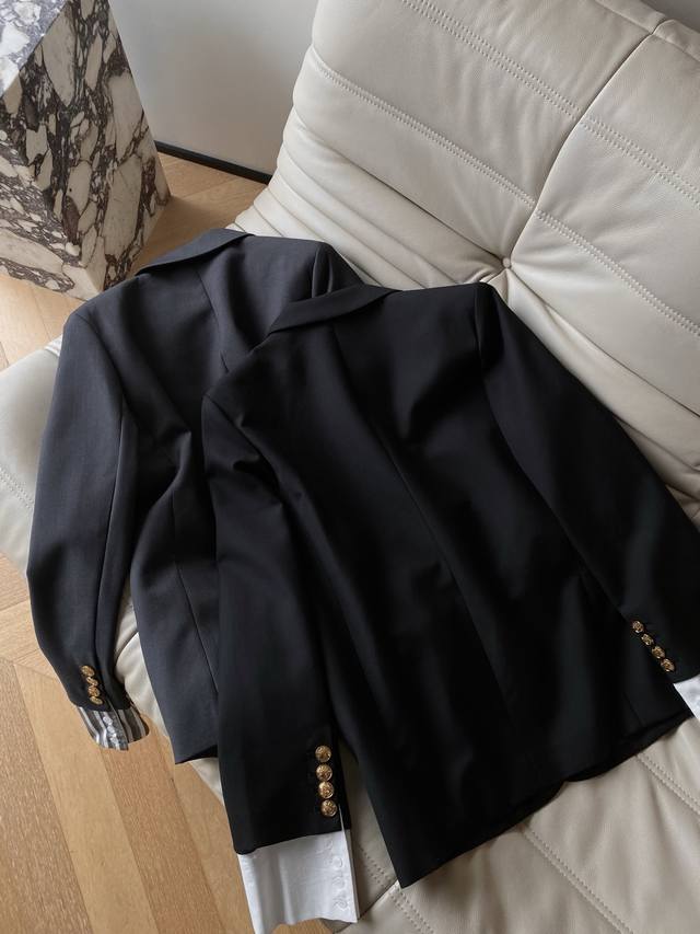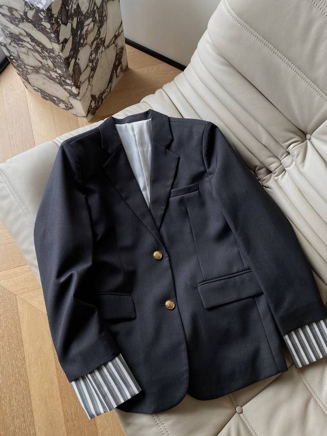 25pf Autumn and Winter Wool Cuffed Casual Blazer Made of Wool Blend. Classic silhouette with a draped design. Loose and easy to match. Natural cuffs with gold buttons. Contrast fabric adds a sense of design and easily creates a variety of looks. 2 colors and 3 sizes