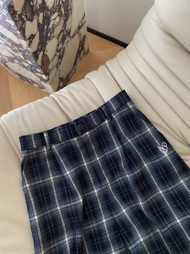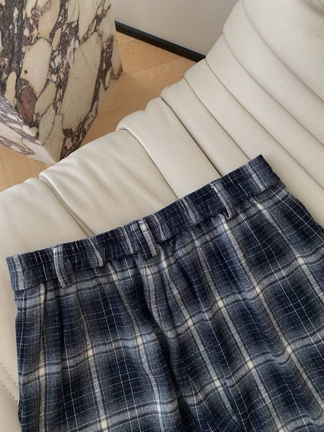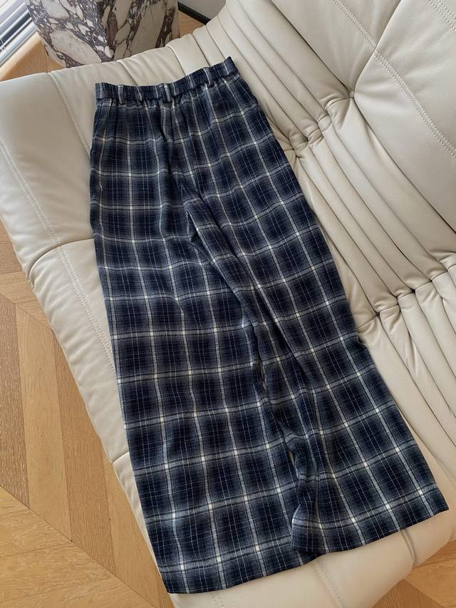 25pf Autumn/Winter Plaid High-Rise Elastic Straight-Leg Pants. Classic plaid pri