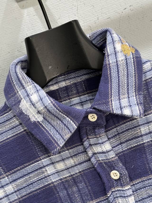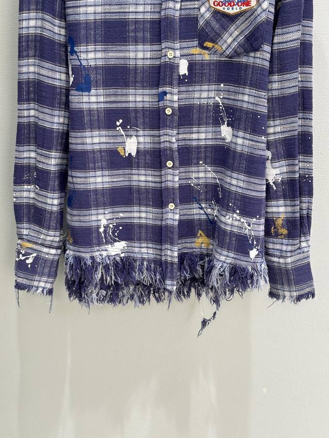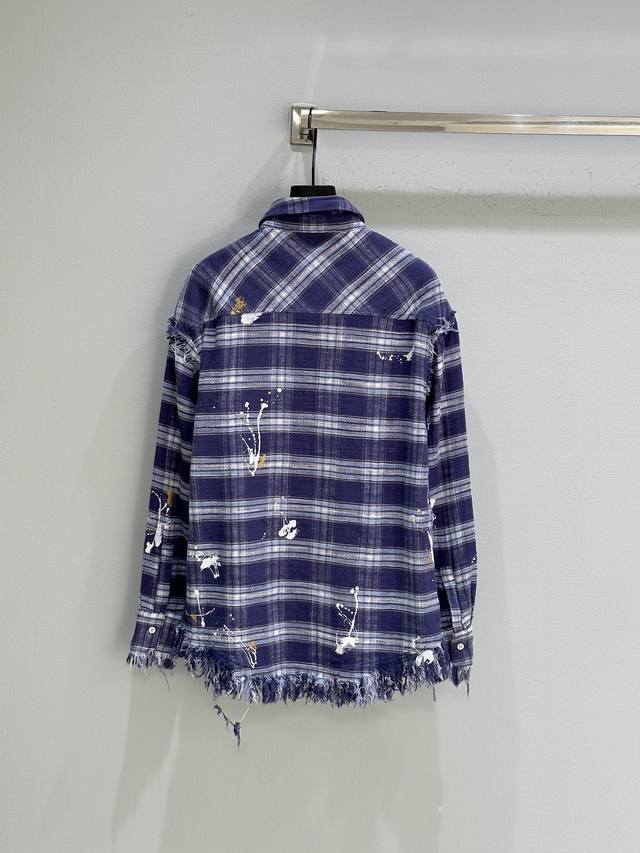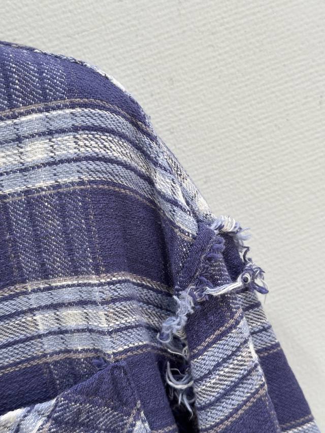 25Ss Autumn New Arrival! The blue-purple plaid color scheme is retro yet eye-catching, exuding youthful energy. The distressed edge design is the perfect finishing touch, breaking the mold and adding a touch of rebellious street style. Whether for everyday outings or posing for photos, it will easily make you the center of attention. Plaid Sml