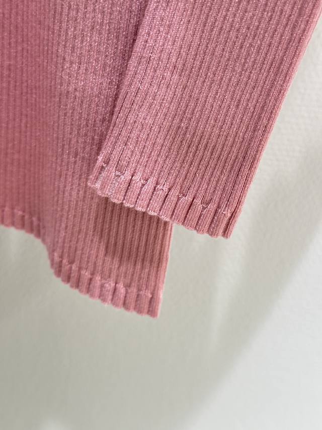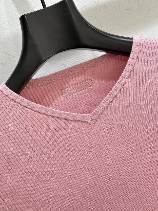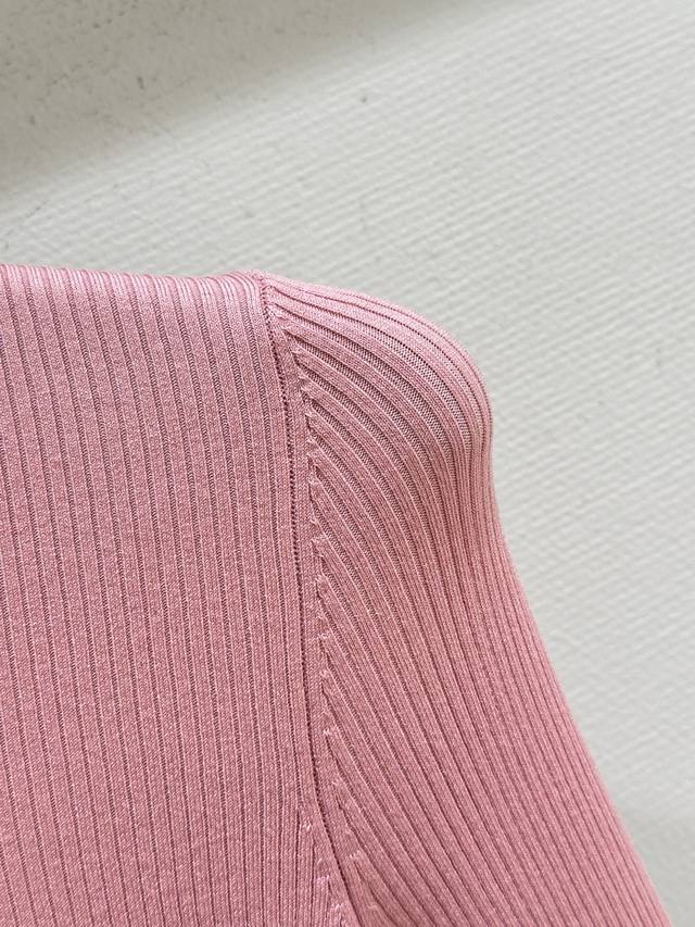 25Ss Autumn New Arrival! The sexy sheerness of silk enriches the silhouette of this sweater, combined with the exquisite ribbed knit texture and the iconic logo tag on the back, creating a versatile and modern look. Available in pink, S/M/D/D.