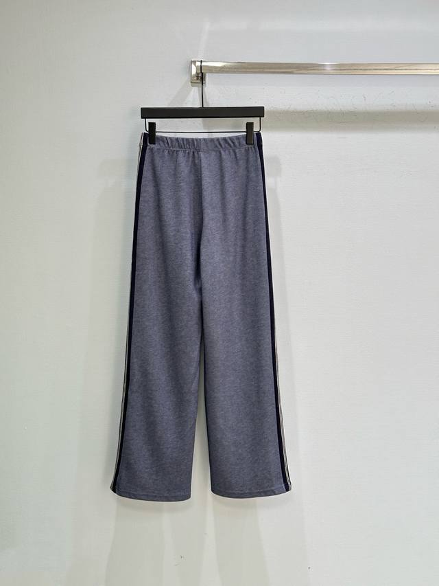25Ss Autumn New Arrival! These knitted casual pants stand out with their fabric stitching and modern attitude, redefining minimalist style with bold details such as contrasting side panels and embroidered lettering logos. A drawstring waist with an elastic waistband provides a flattering fit. Available in grey, Sml, DDD