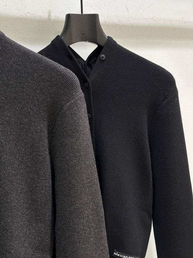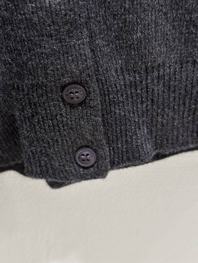 25Ss Autumn New Arrival! This slim-fit long-sleeved cardigan is crafted from a wool blend and features a one-piece closure with classic ribbed trim. It's adorned with faux horn buttons and a tonal logo patch, allowing for effortless styling. Available in grey and black, sizes S, M, L, DDD