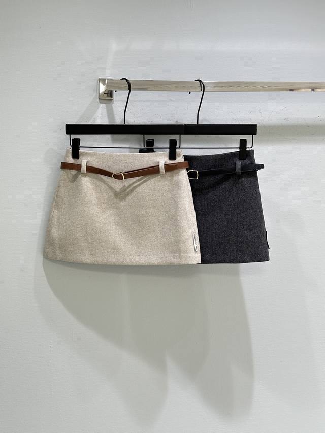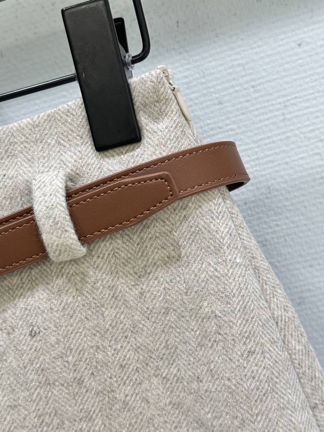 25Ss Autumn/Winter New Arrival! A bodycon, slim-fitting straight skirt with a leather belt, exuding a retro-modern vibe. This skirt is versatile and easy to match with sweaters and blazers, suitable for both work and casual occasions. Available in grey and beige, sizes S, M, L, DDD.