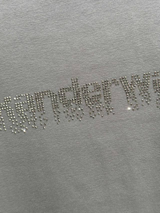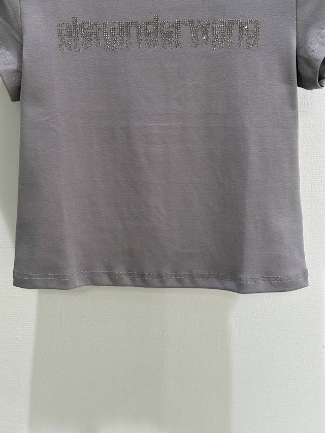 25Ss Autumn/Winter New Arrival! Cotton plain knit fabric with rhinestone logo on the chest, ribbed cuffs and hem, fitted and stretchy. Available in black, white, and gray. Sizes: Sml DDD