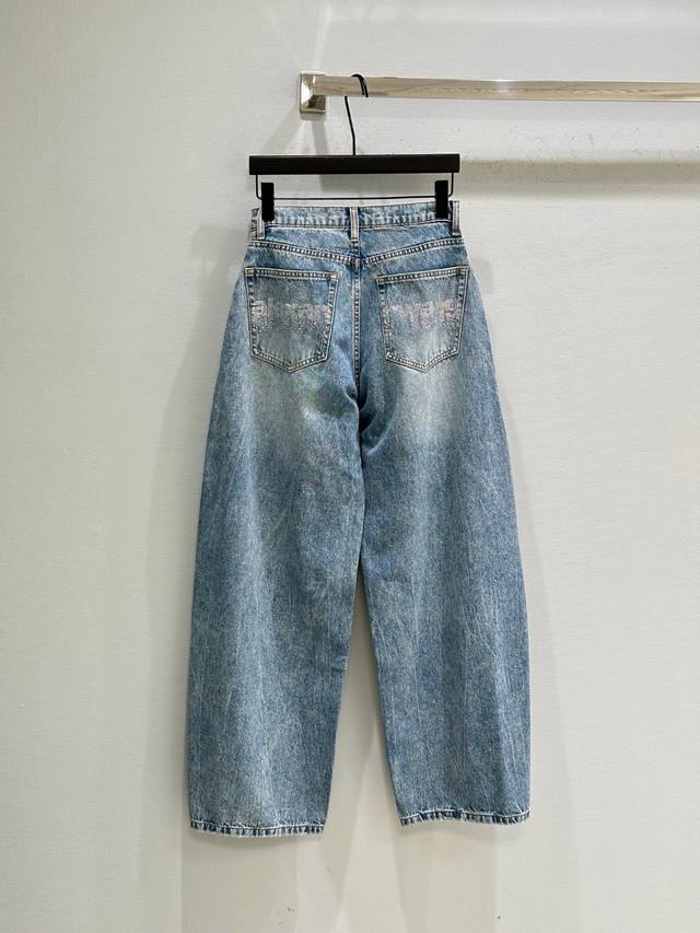 25Ss Autumn/Winter New Arrival! Rhinestone-embellished curved-knife jeans, high-