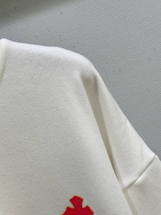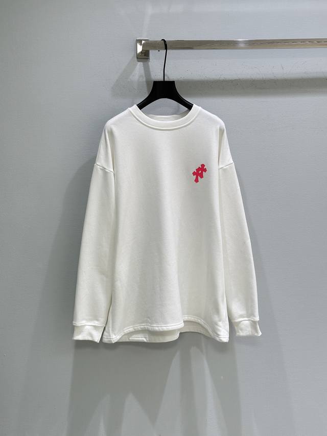 25Ss Autumn/Winter New Arrival! Unique patch logo embellishments on the chest and back add a touch of brightness and personality to the overall look. Fleece-lined sweatshirt, perfect for autumn and winter. Available in white, grey, and black. Sizes: S, M, L, DDD