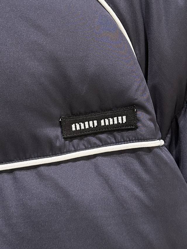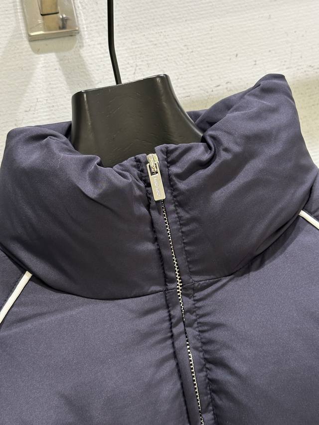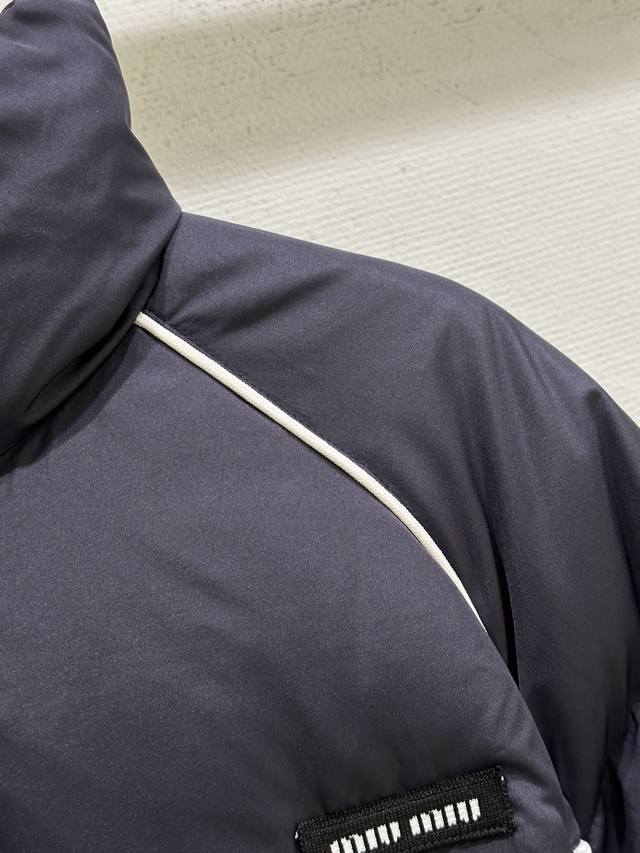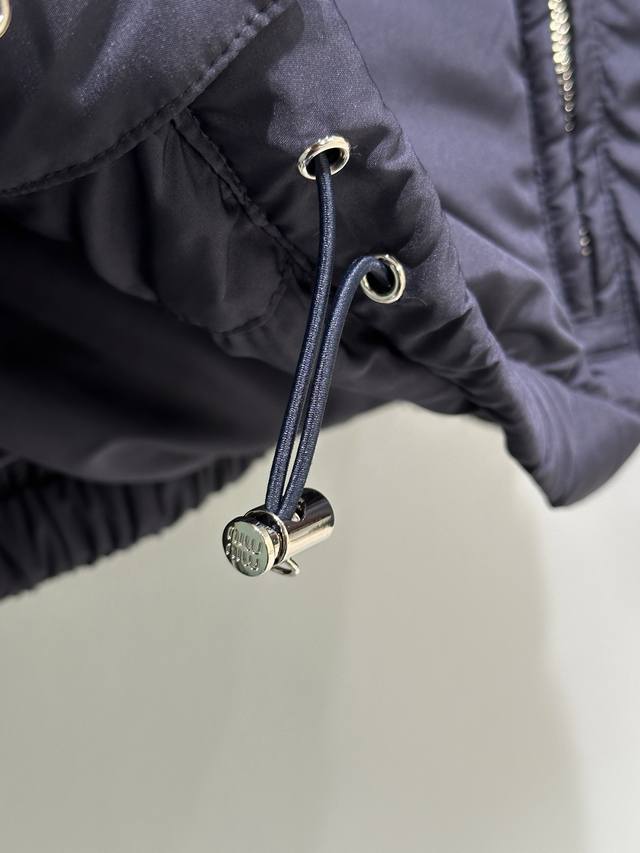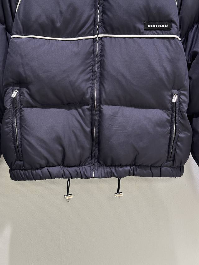 25Ss Autumn/Winter New Arrivals! The down jacket is a signature piece in the Miu wardrobe, showcasing a rebellious modern spirit. This slightly cropped design is inspired by sporty piping on the runway, presenting a casual and versatile style. Available now in blue Sml DDD