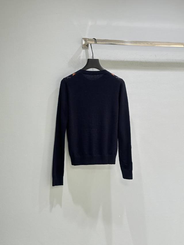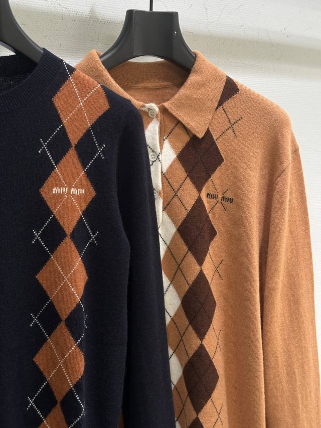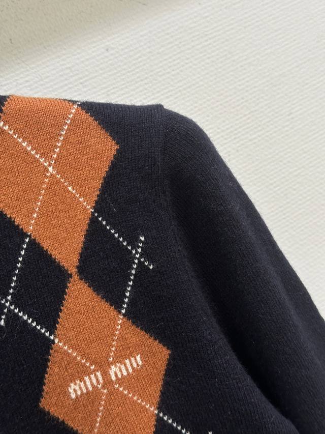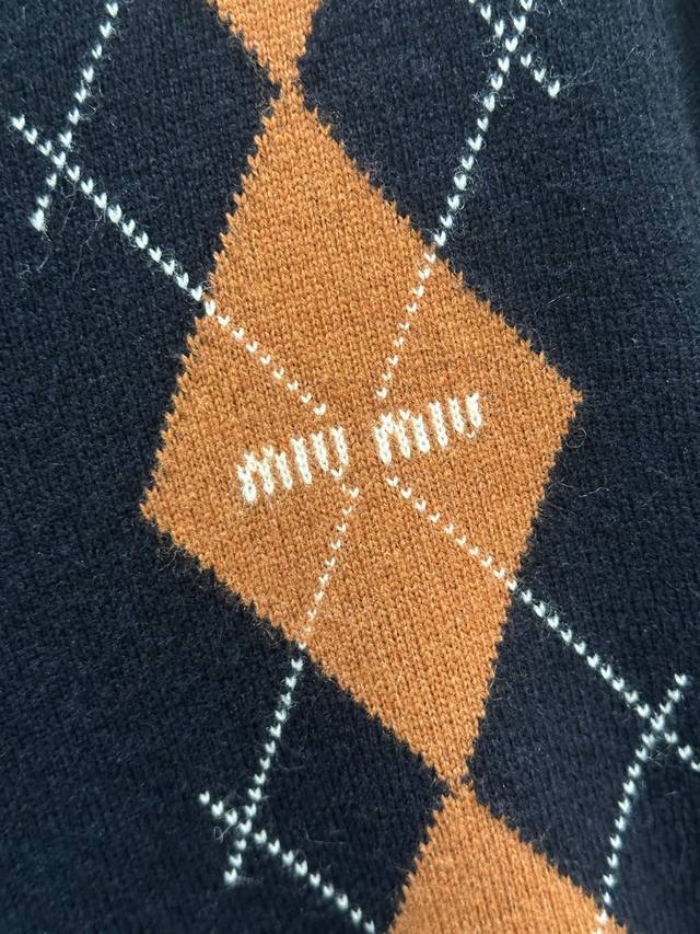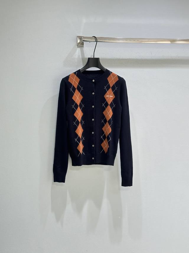 25Ss Early Autumn New Arrival! Diamond Pattern Knit Cardigan, a youthful and flattering piece from Miu Miu's classic preppy style, navy blue