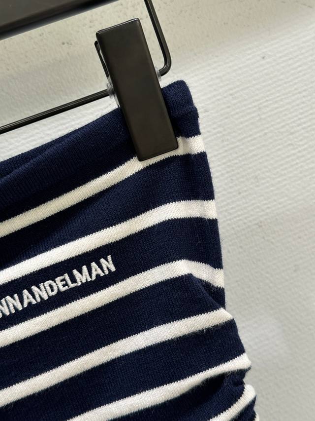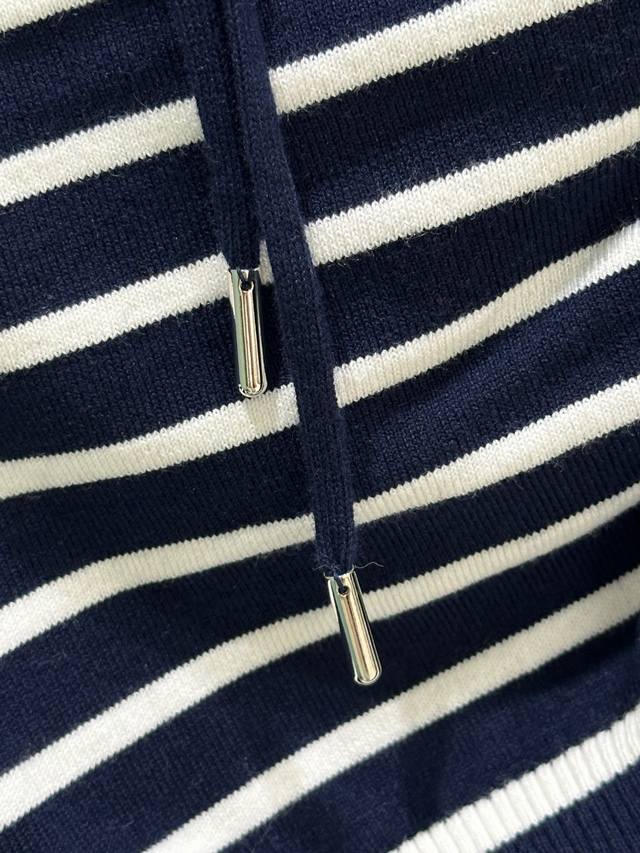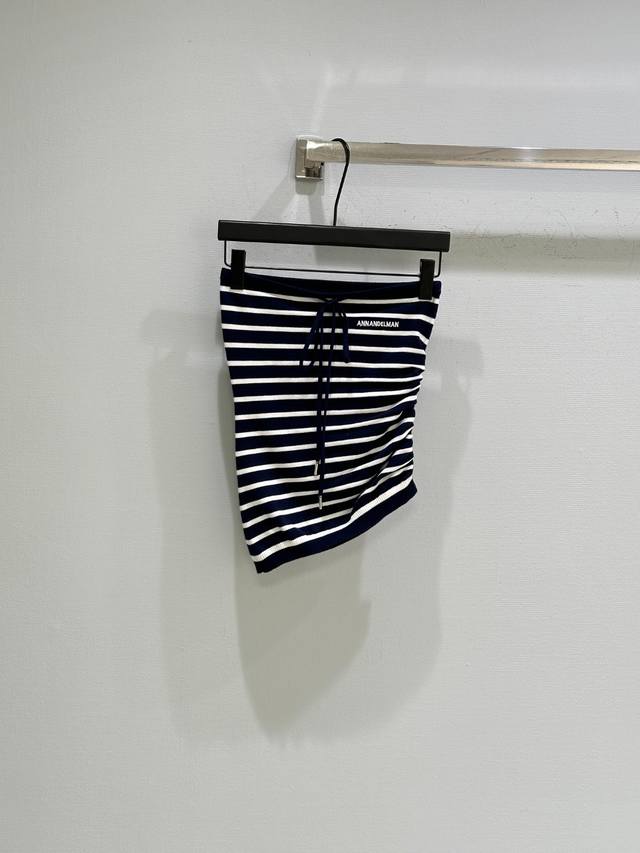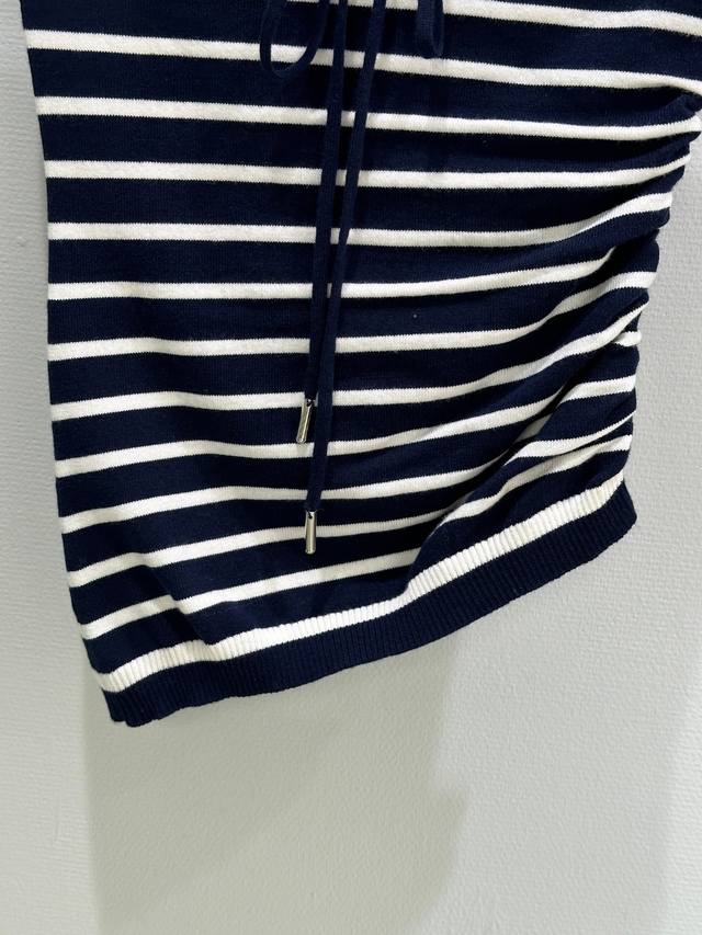 25Ss Early Autumn New Arrival! Striped knitted tie-front strapless tank top, sexy and hot, sleeveless top that can be worn alone. Adjustable drawstring at the chest, slimming waist with pleats, asymmetrical hem, contrasting stripes, and a fitted silhouette. Available in S, M, D, and D sizes.