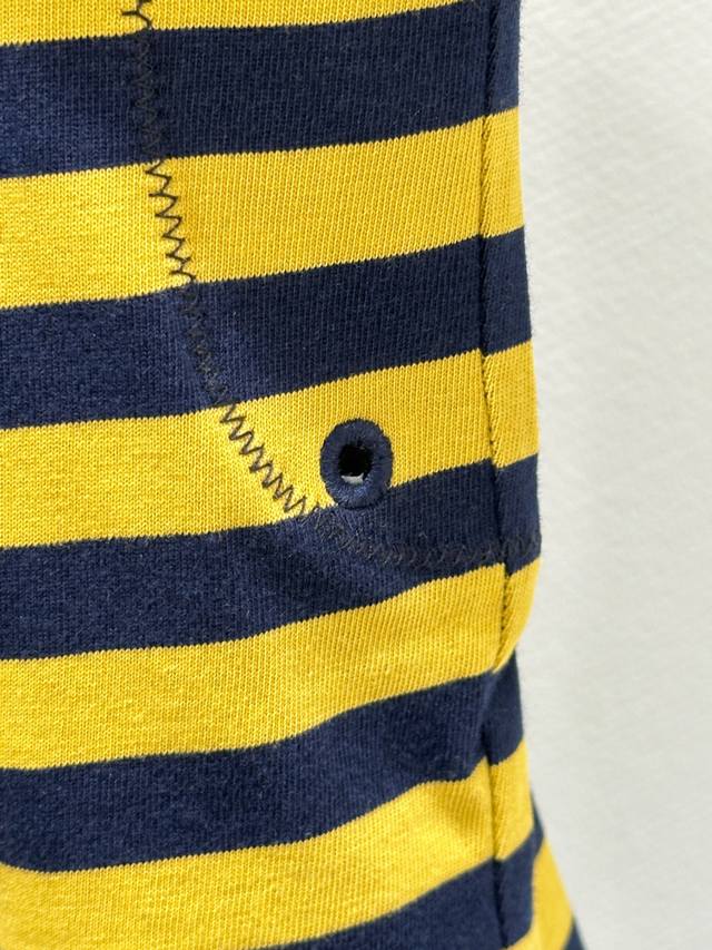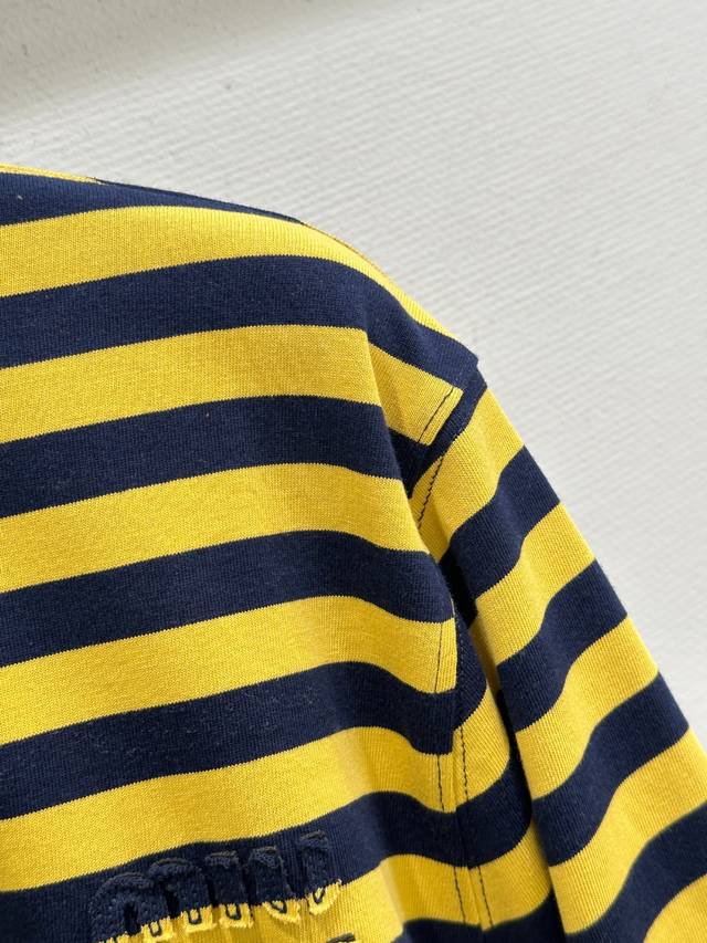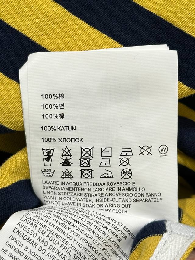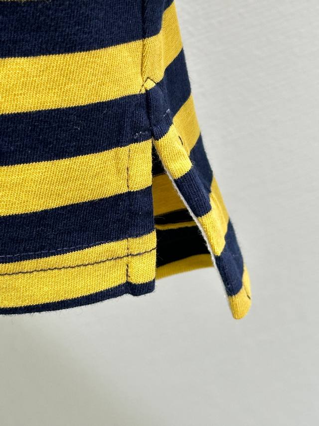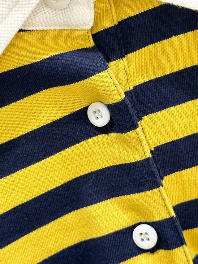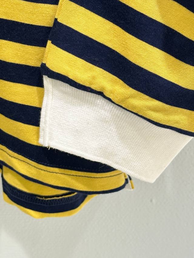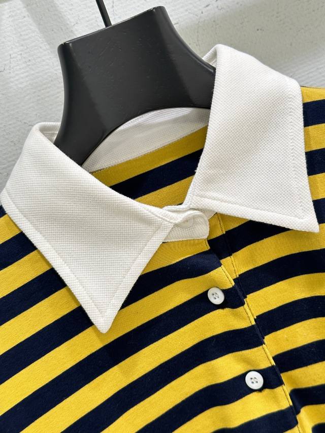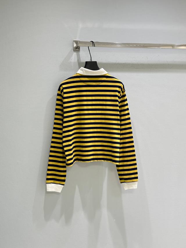 25Ss Early Autumn New Arrival! This cotton white collared half-button striped long-sleeved T-shirt features a vibrant yellow and black bee color scheme, with white cuffs. It's easy to style and exudes a relaxed vibe. Available in yellow (Sizes S, M, L) DDD