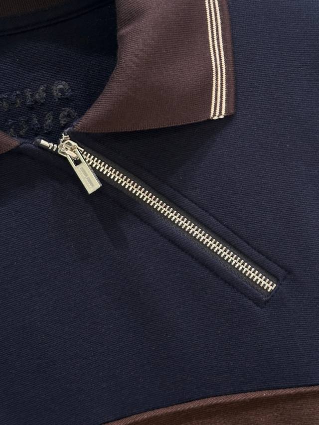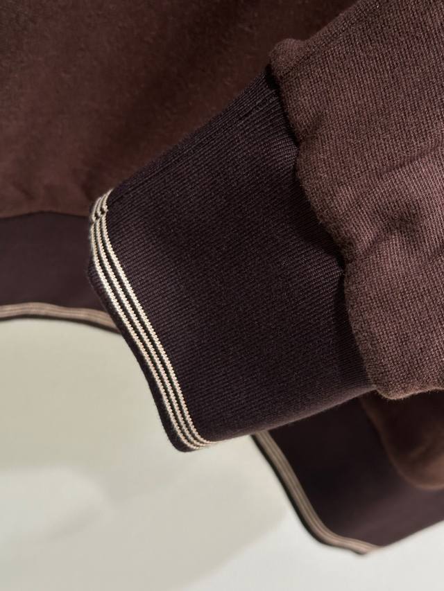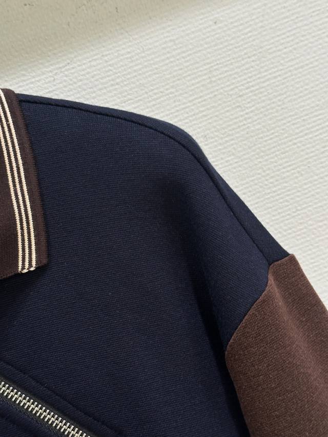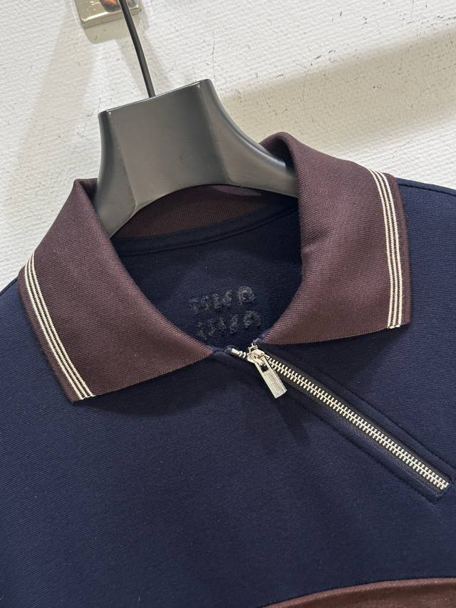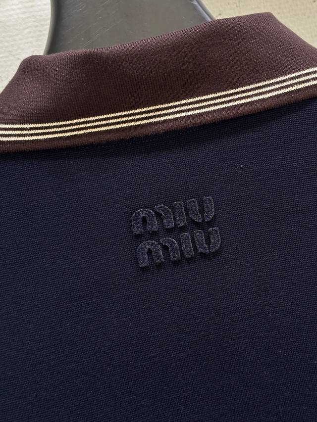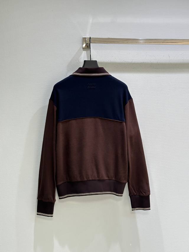 25Ss Early Fall new arrival! Miu oblique zipper contrast color sweatshirt collar contrast color stripe elements neckline spliced side zipper sleeves and body with contrast color design back with brand logo logo full of design sense of a sweatshirt! Available in coffee color Sml
