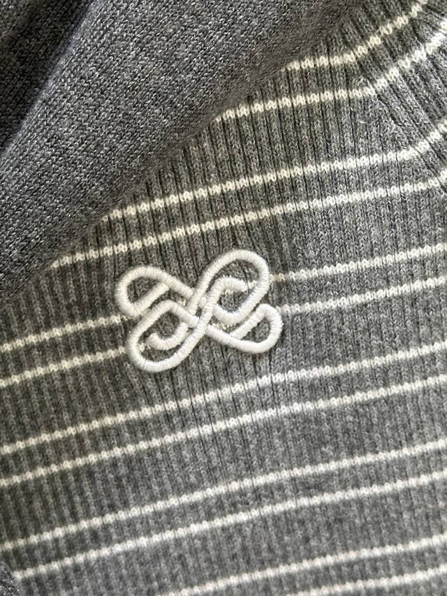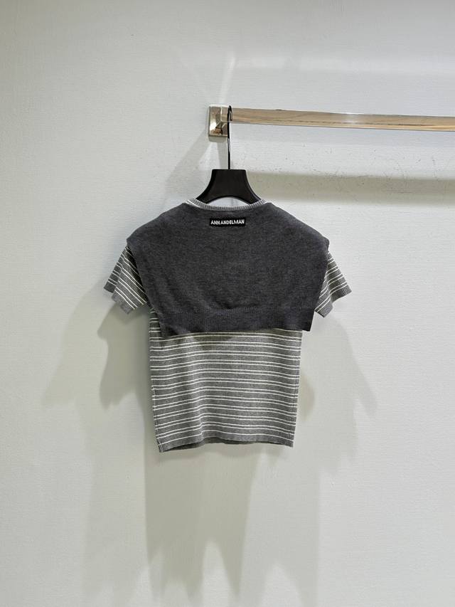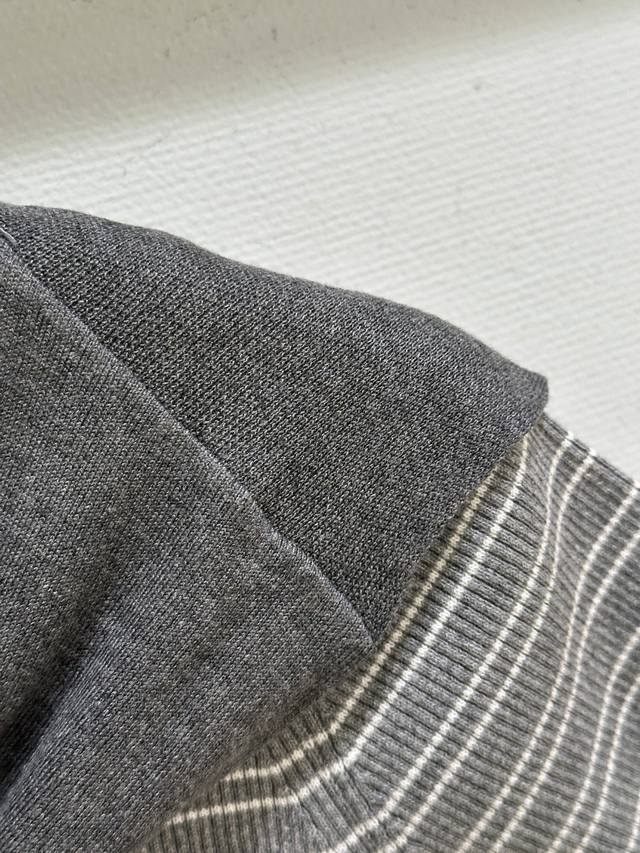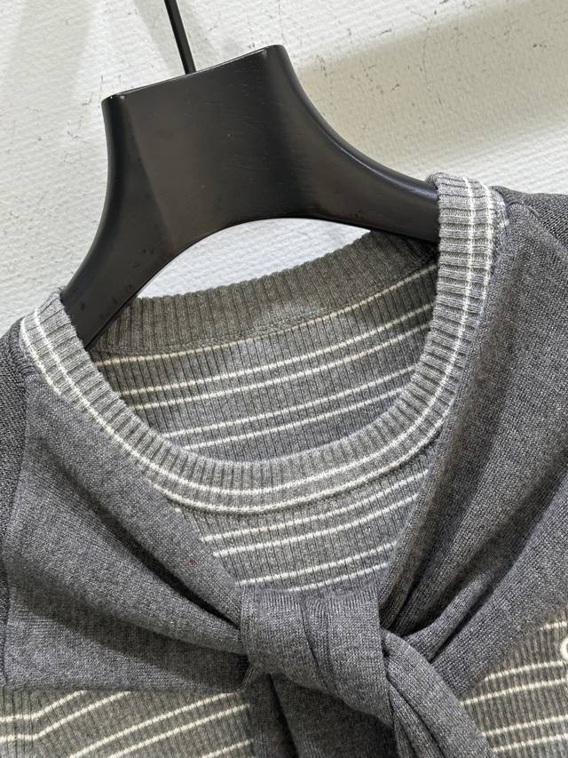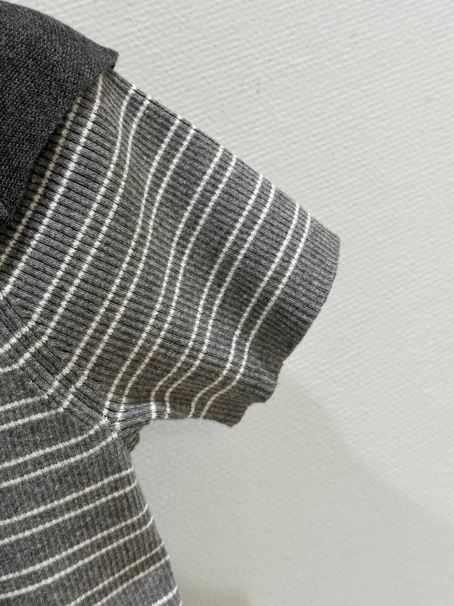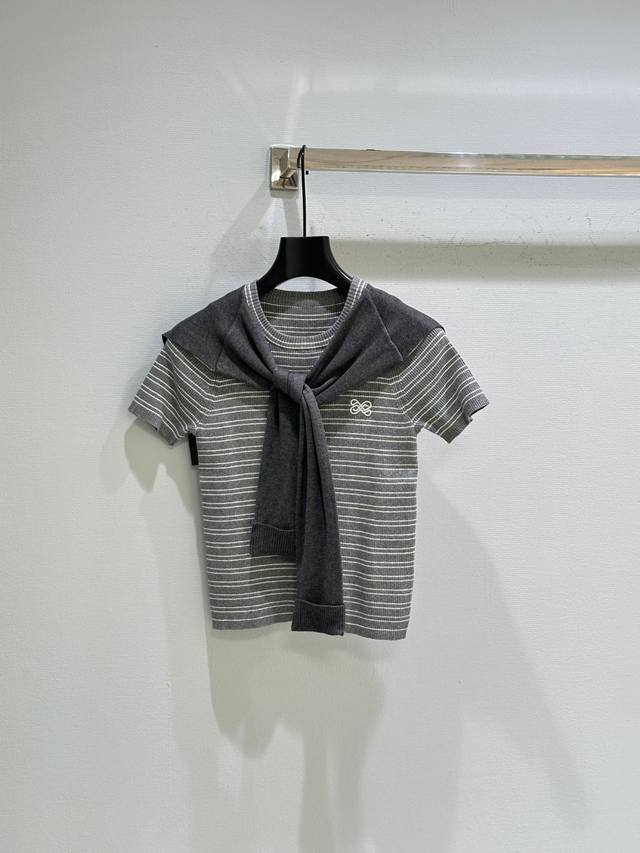 25Ss Early Fall New Arrivals! Shawl Striped Short Sweater Short Sleeve Top Decorated with Novel Horizontal Stripes Unique Design Unique Series Reflects Simple and Vibrant Style Short Sweater and Removable Shawl Design Decorated with Horizontal Stripes and Logo Embroidery Logo Embroidery Presents Vibrant Single Item for Daily Wear! Available in Gray and Brown Sml