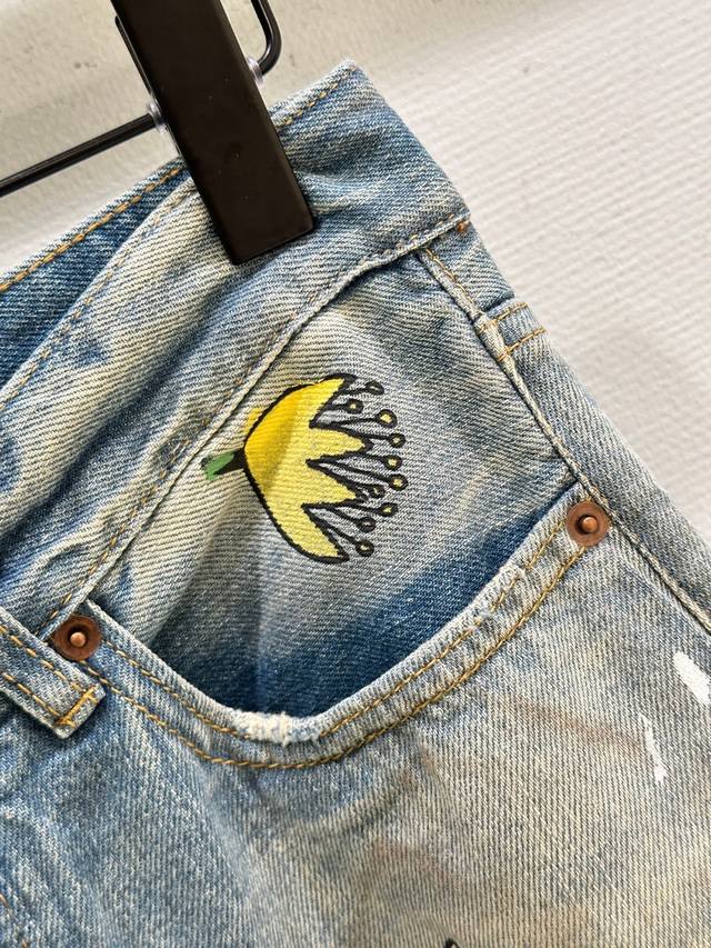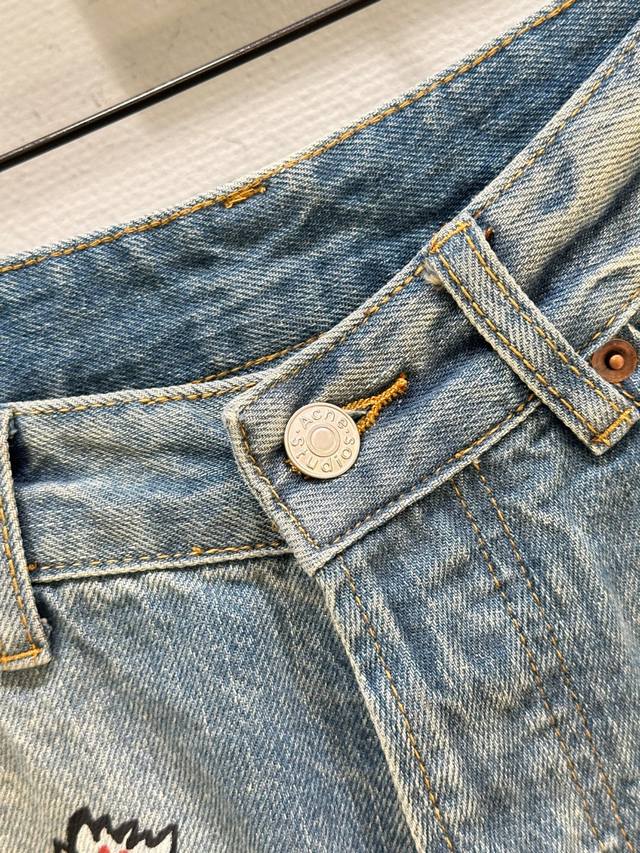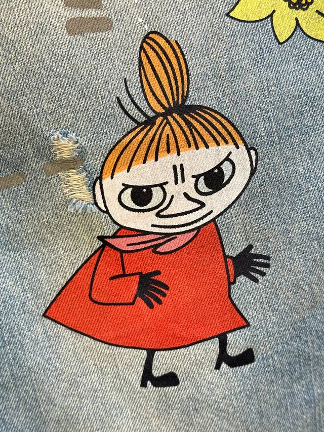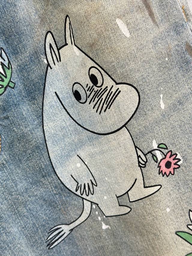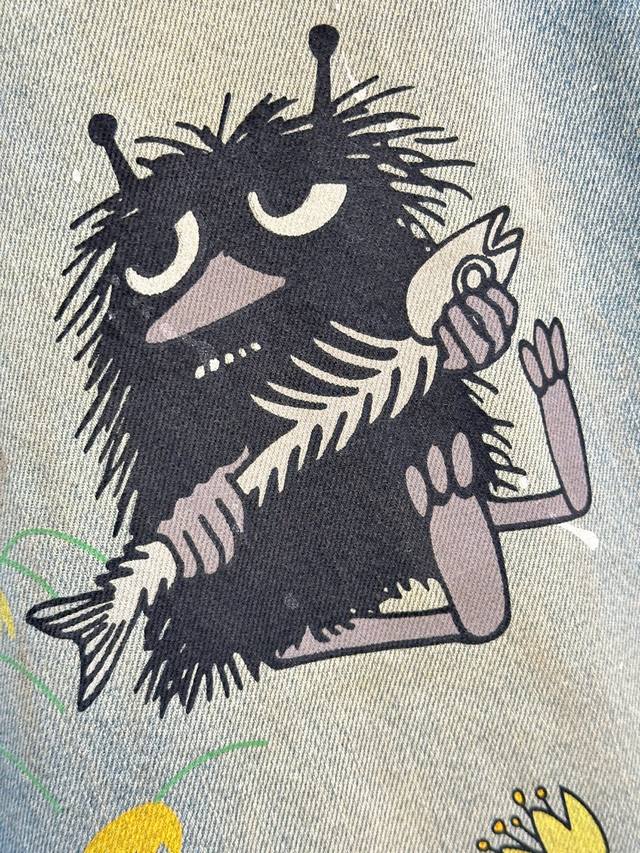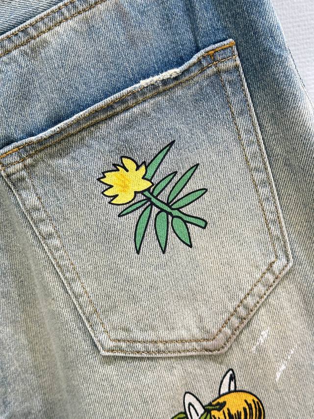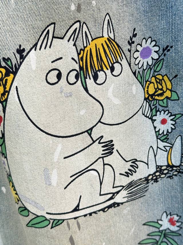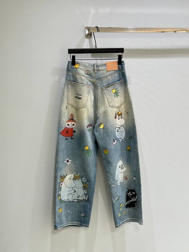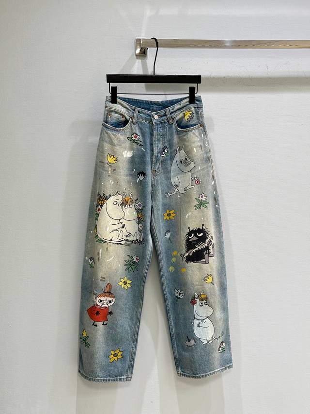 25Ss Early Fall New Arrivals! These co-branded loose-fitting jeans are made from non-stretch denim and embellished with hippopotamus, flowers, and character prints for a playful, playful feel. They feature a loose fit, a low waist, and wide legs for a slimming effect. Available now in blue (Xssm