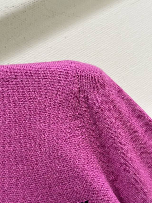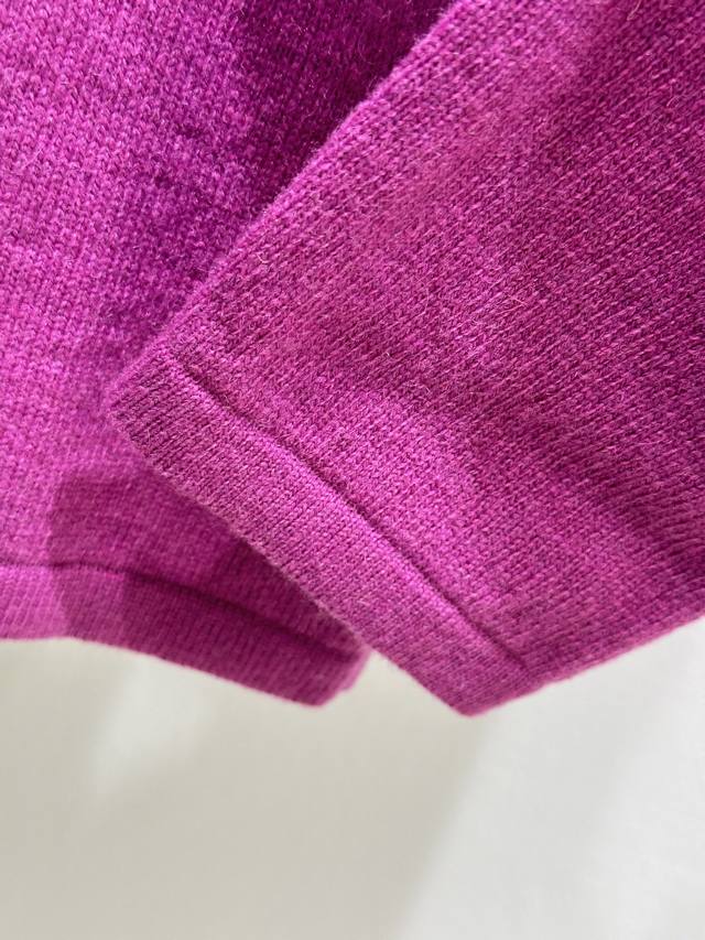 25Ss Early Fall New Arrivals! This knitted top features a dense knit, ribbed knit collar, and an embroidered logo on the chest. The thin fabric is perfect for autumn's warmer weather and can be worn alone or as a base layer. Available now in purple (Sml