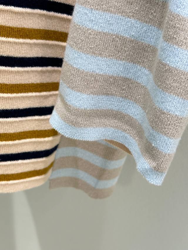 25Ss Early Fall New Arrivals! This striped sweater is so pretty! It won't make you look fat, and it creates a relaxed look. Elegant textures are incorporated into the design details, perfect for pairing with jeans! Available now: Striped Sml